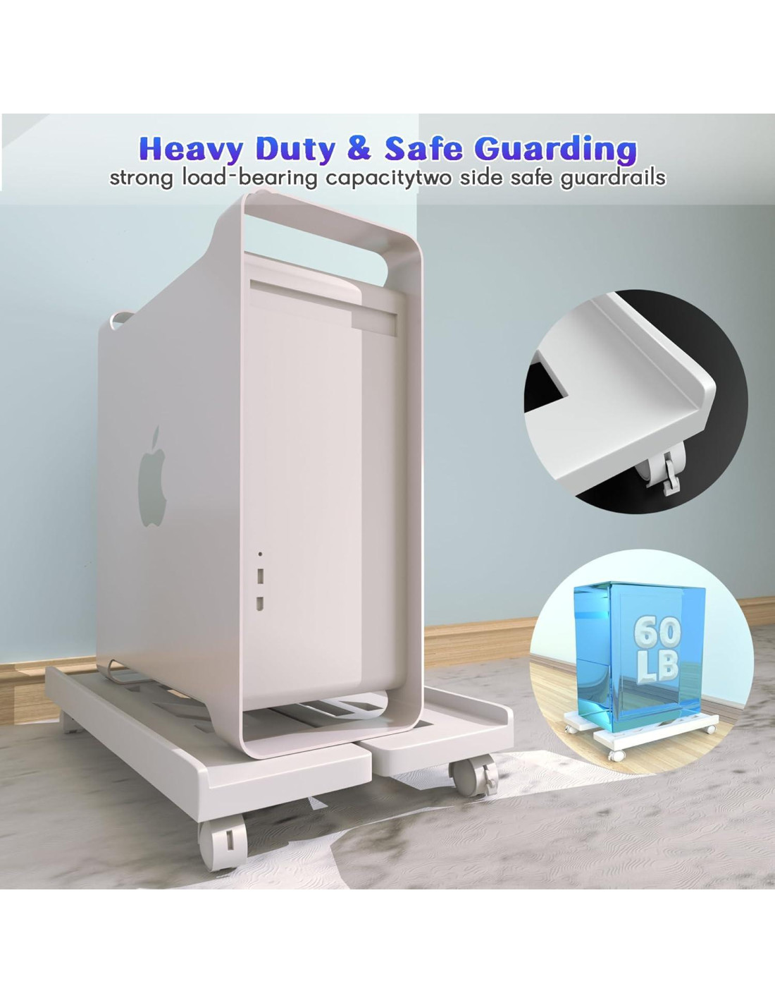 - Facilidad de Movimiento: Este soporte de CPU viene con ruedas universales giratorias de 360 para fácil movilidad, permitiendo una reubicación conveniente y sin complicaciones de tu configuración de oficina.