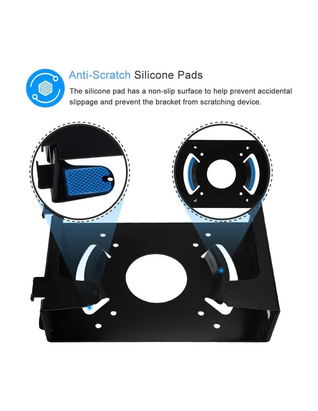 - Soporte para Adaptador de Corriente: Incluye dos correas para sostener el adaptador de corriente debajo del soporte. Mantén tus cables limpios en todos los escenarios de instalación