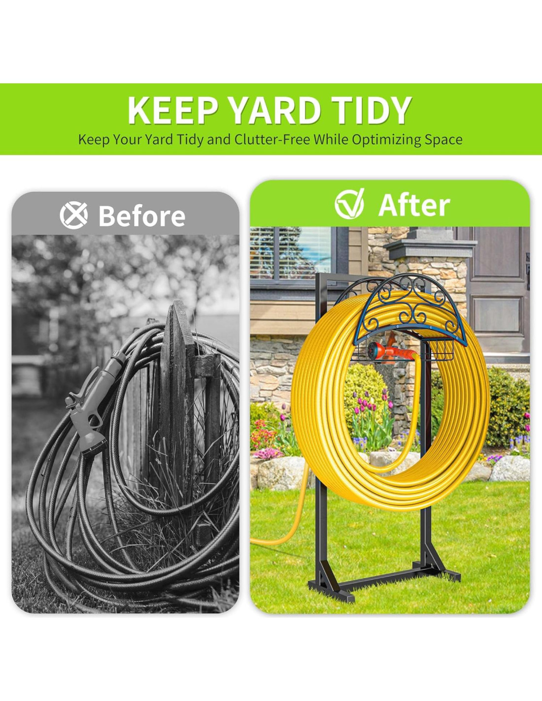 - Soporte de Base Mejorado Diseñado para durabilidad, este soporte para manguera de jardín independiente cuenta con una base reforzada con cuatro puntos de anclaje seguros, proporcionando excelente estabilidad. La estructura más ancha y gruesa previene vuelcos o doblados, permitiendo que soporte hasta 46m de manguera sin esfuerzo.