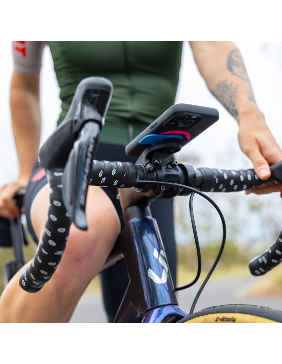 Soporte Quad Lock Out Front Monta con confianza usando el Soporte Quad Lock Out Front. Con nuestro sistema de bloqueo de doble etapa patentado, tu smartphone se mantiene seguro en tu bicicleta sin importar el terreno. Simplemente gira y bloquea para ver aplicaciones como Strava, MapMyRide o Apple Maps, luego desengancha fácilmente para que nunca te pierdas una oportunidad de foto o una llamada importante. El Soporte Out Front se puede invertir para montaje sobre el vástago y se adapta a diámetros de manillar de 22mm, 25.4mm, 31.8mm y 35mm (7/8", 1", 1-1/4" y 1-3/8"). Construido con hardware de acero inoxidable, es compatible con el Adaptador de Cámara/Luz Quad Lock, todos los Estuches Quad Lock y Adaptadores Universales.