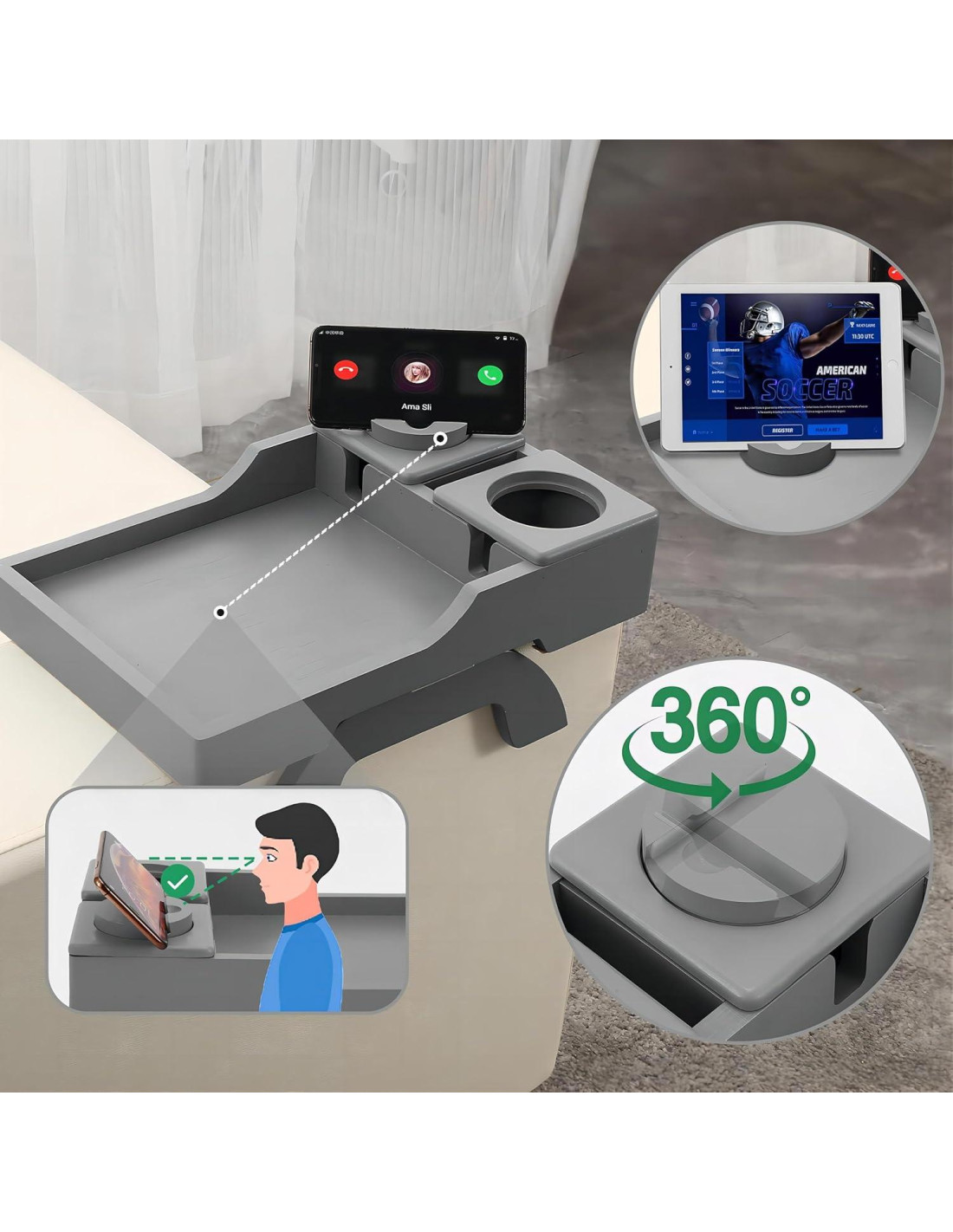 - Soporte para Tazas de Sofá 4-en-1: La mesa para brazos de sofá se ha actualizado recientemente para integrar soporte para teléfono, soporte para tazas, bandeja y organizador de mesa en uno, lo que significa que puedes experimentar múltiples funciones por solo unos centavos. Ideal para quienes buscan comodidad