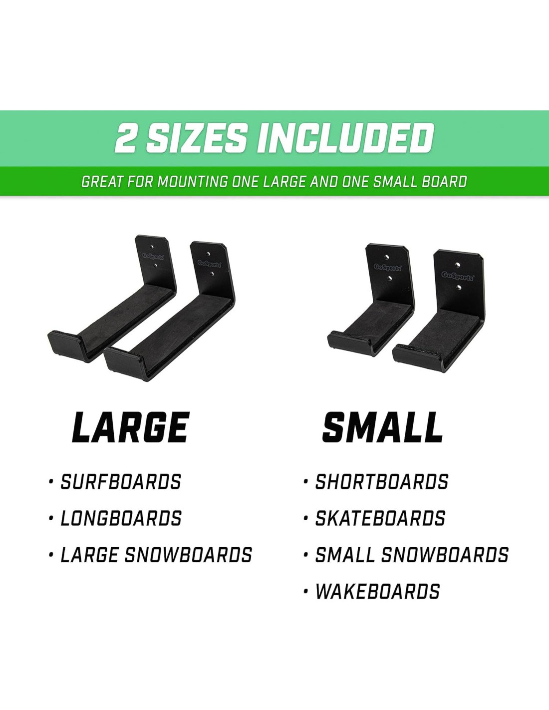 - PAQUETE DE 2 POR EL PRECIO DE UNO: Incluye 2 juegos de soportes de montaje (uno grande, uno pequeño) para que puedas montar múltiples tablas (snowboards, skateboards, tablas de surf, wakeboards y más)