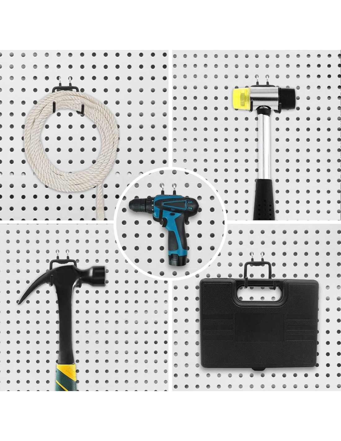 - Fácil de fijar y nunca se caen del panel perforado: diseñado para colocarse fácilmente en el panel perforado y colgarse de manera estable. Además, los ganchos de utilidad de alta resistencia pueden ahorrar espacio de manera más eficiente para ti