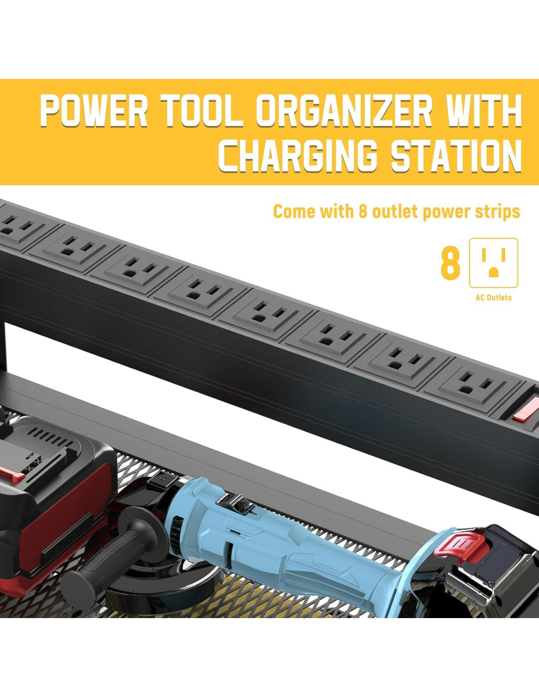 - Diseño de Carga Conveniente: Nuestro organizador de herramientas inalámbricas está equipado con una estación de carga listada por UL, incluye 8 tiras de salida, viene con un cable de alimentación de 6.5ft (1.98m), salida 125V/15A/1875W. La estación de carga está montada a 2.7in (6.86cm) sobre el estante de malla y carga 8 kits de carga de herramientas mientras almacena, ahorrando espacio y proporcionando energía continua.