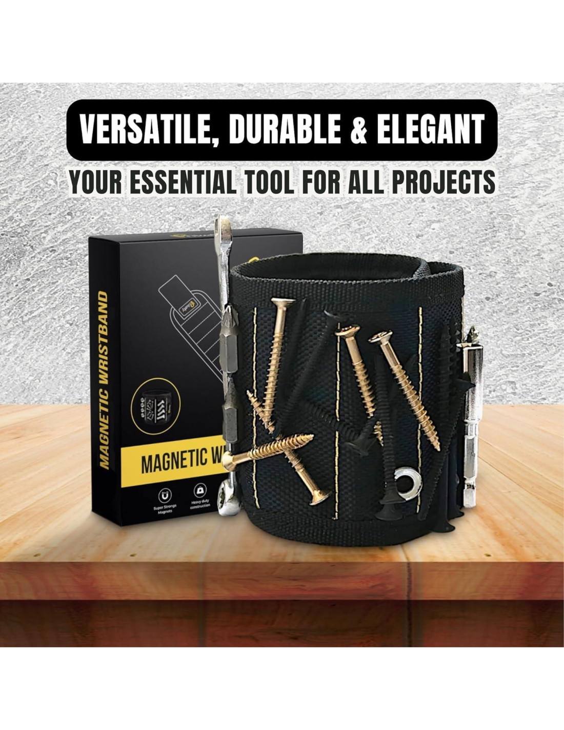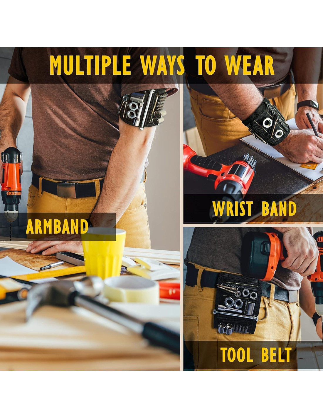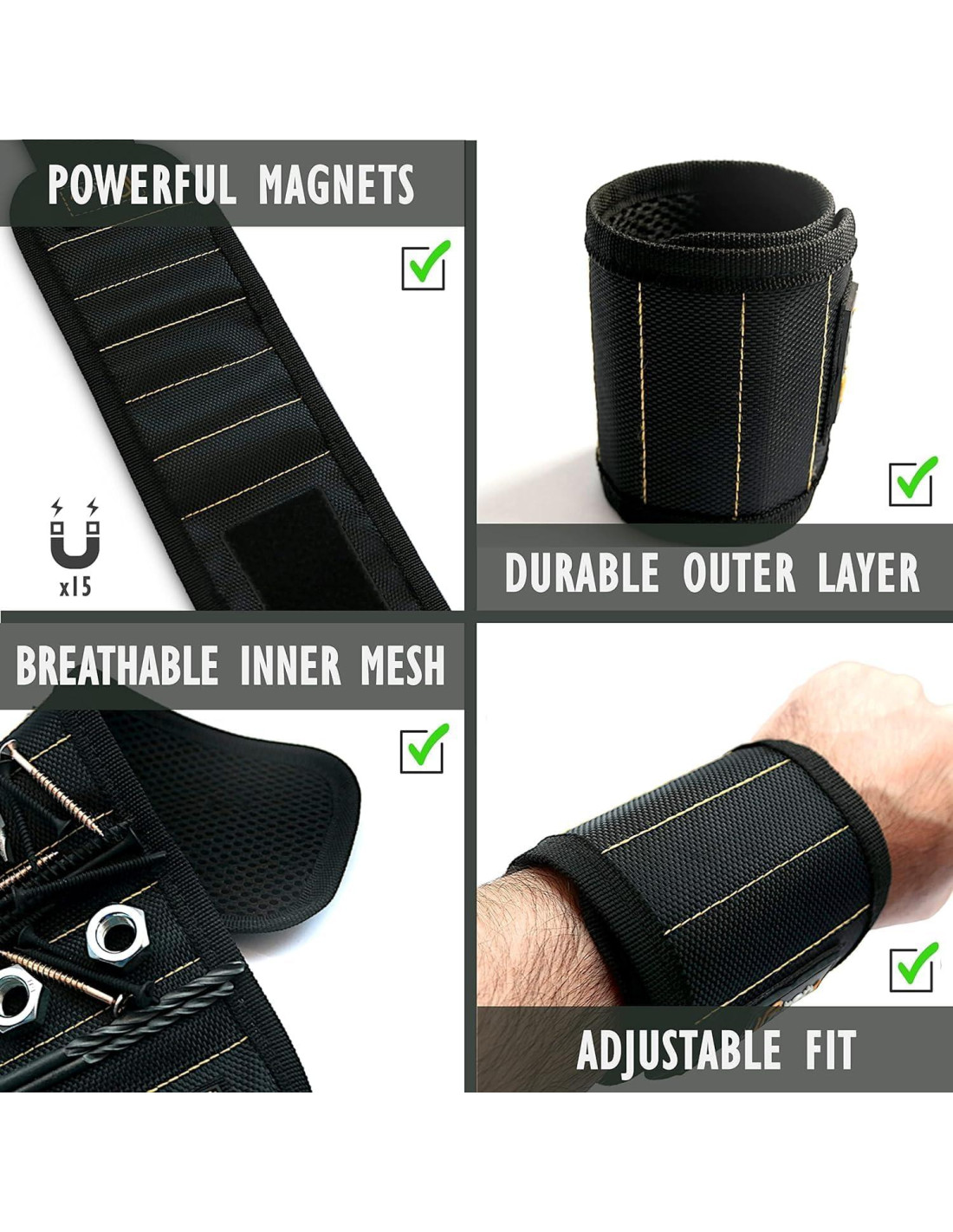 - Ahorra Tiempo Mientras Trabajas - No más buscando en tu caja de herramientas. Con 15x3.9" (38.1x9.9 cm) hay más que suficiente espacio para pegar todos los bits de taladro, tornillos, clavos y tuercas que necesites en esta banda de muñeca magnética.