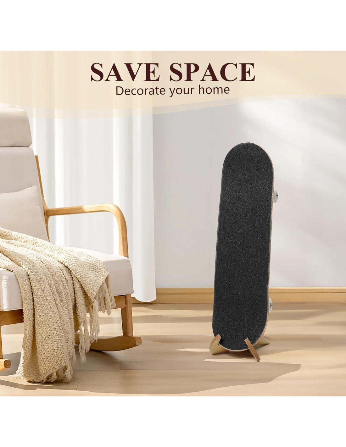 - -Material de alta calidad y diseño protector: Hecho de madera de alta calidad, el soporte para patineta incluye almohadillas acolchadas para prevenir eficazmente los rasguños en la superficie de la patineta. Este soporte de madera para patineta atrae a los entusiastas y coleccionistas de patinetas, preservando el valor de la patineta, y también es adecuado para exhibiciones profesionales en tiendas de patinetas, mejorando la presentación del producto con accesorios de patineta elegantes.