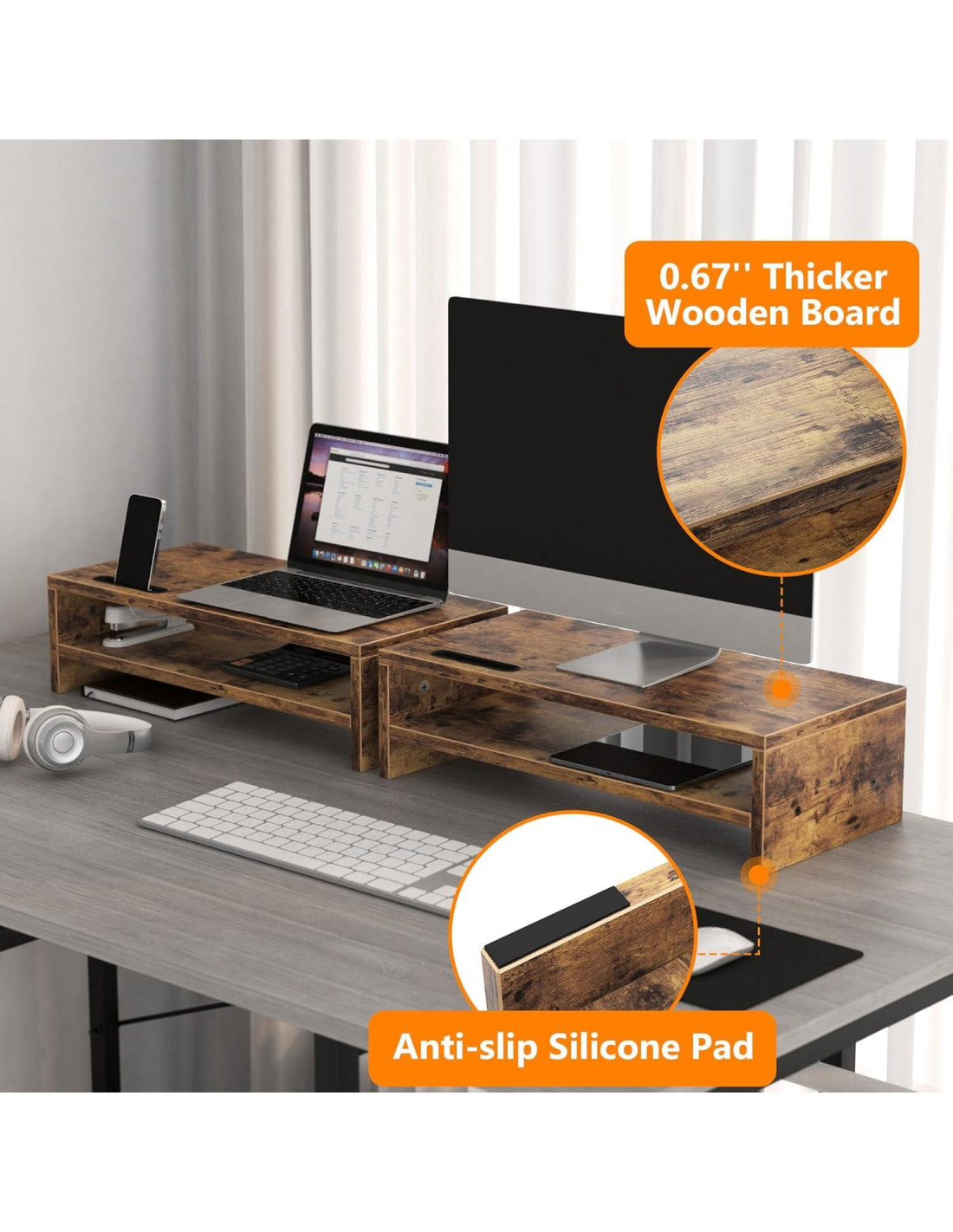 - Estructura Estable y Almohadillas de Silicona Antideslizantes: El elevador del soporte para monitor está hecho de tablero de partículas ecológico de alta resistencia y grueso, que es fácil de limpiar, impermeable y asegura años de uso. El soporte para monitor de computadora viene con almohadillas de silicona antideslizantes para evitar deslizamientos y proteger su querido escritorio
