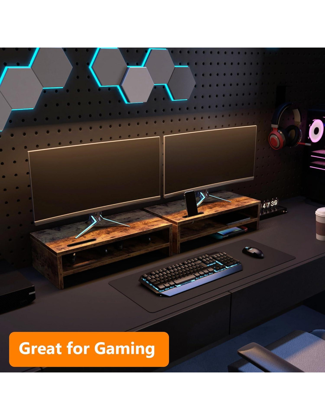 - Ranura para Teléfono y Almacenamiento de 2 Niveles y Gran Organizador de Escritorio: La ranura para teléfono incorporada única del soporte de computadora mantiene su teléfono al alcance, ahorrando valioso espacio en el escritorio. Soporte para monitor de escritorio con 2 estantes de almacenamiento, proporcionando suficiente espacio para guardar bolígrafos, libros, teclado, ratón, calculadora, archivos de papel, pequeños artículos de oficina, etc., manteniendo su espacio de trabajo ordenado