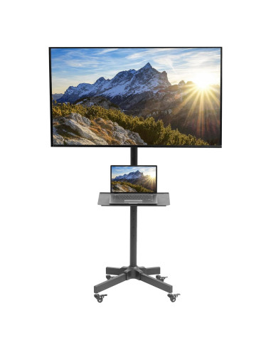 Este soporte de televisión proporciona la configuración perfecta tanto para uso doméstico como profesional, ya sea que estés jugando en tu Xbox, dando una presentación de trabajo en la oficina o enseñando en un aula. Las características incluyen inclinación de pantalla de 15, ruedas con bloqueo, gestión de cables y un estante de almacenamiento medio ajustable. Rutea los cables a través de la gestión interna oculta. Ruedas con bloqueo. La base cuenta con 4 ruedas para una movilidad suave tanto en pisos de madera como en alfombras. Instrucciones incluidas. Asegura los soportes VESA a la TV. Cuelga los soportes sobre la placa de montaje. Ajusta la visualización y rutea los cables. 13", 16", 19", 23", 24", 27", 32", 37", 40", 42", 43", 48", 49", 50", 55", 60". Altura total del soporte: 61". Altura máxima del centro de la pantalla: 59.5". Inclinación de pantalla +15 a -15. Altura máxima del estante: 27" (68.58 cm). Base de acero: 14.5" (36.83 cm) x 19.5" (49.53 cm). Estante: 19" (48.26 cm) x 11.5" (29.21 cm). Color: Negro, Blanco.