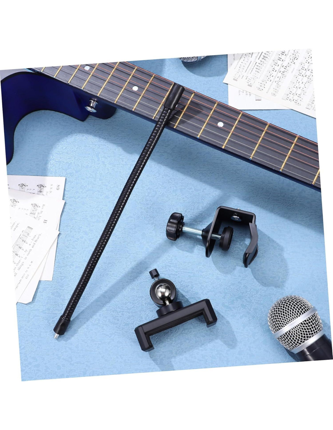 - Compatibilidad universal: el diseño ajustable del soporte para teléfono de micrófono lo hace adecuado para varios modelos de teléfonos e incluso tabletas, soporte para teléfono de guitarra, Soporte para Teléfono Rotatorio