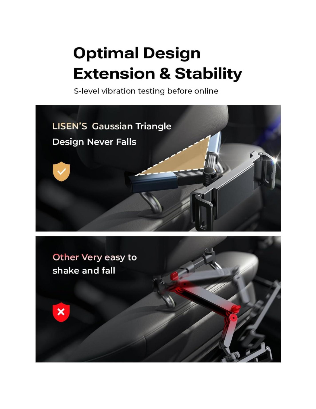 -Haz que tu elección sea digna, después de probar 3 versiones diferentes de soporte para tablet en el auto, elige este soporte para tablet LISEN para resolver todos los problemas