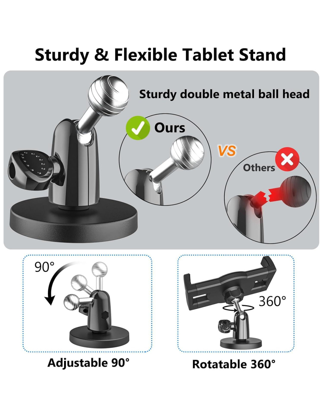 - Rotación de 360 Grados El soporte magnético para tabletas cuenta con una base magnética que presenta una cabeza de bola de aluminio, permitiéndote ajustar el ángulo de la tableta según tus necesidades, solo puedes girar la abrazadera de la tableta para cambiar cualquier dirección, la operación es tan simple que captura más visualizaciones, la cuna de la tableta magnética con diseño de ajuste de 360 grados proporciona el mejor ángulo.