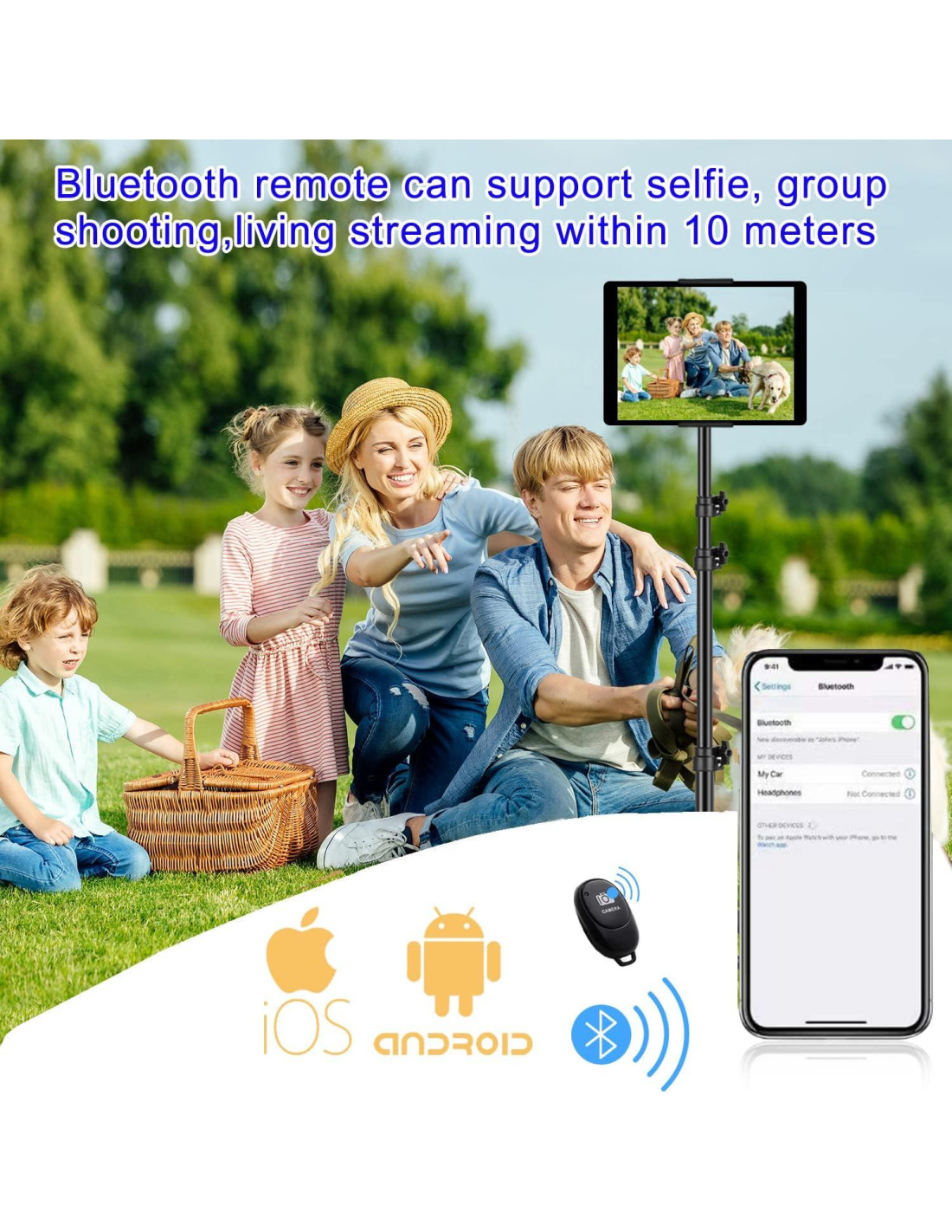 - Liberar tus manos: El soporte de trípode para tabletas puede sostener tu tableta y liberar tus manos, para que te concentres en lo que estás haciendo. El soporte de trípode para tabletas se puede usar en cualquier lugar, como sala de estar, gimnasio, cocina, oficina, aula, etc. Y es perfecto para videollamadas de Zoom, clases de música en línea, chats familiares en línea, ver películas. Además, este soporte de trípode para tabletas incluye un control remoto Bluetooth. Puedes usar el control remoto Bluetooth para tomar fotos hermosas, grabar videos claros, etc.