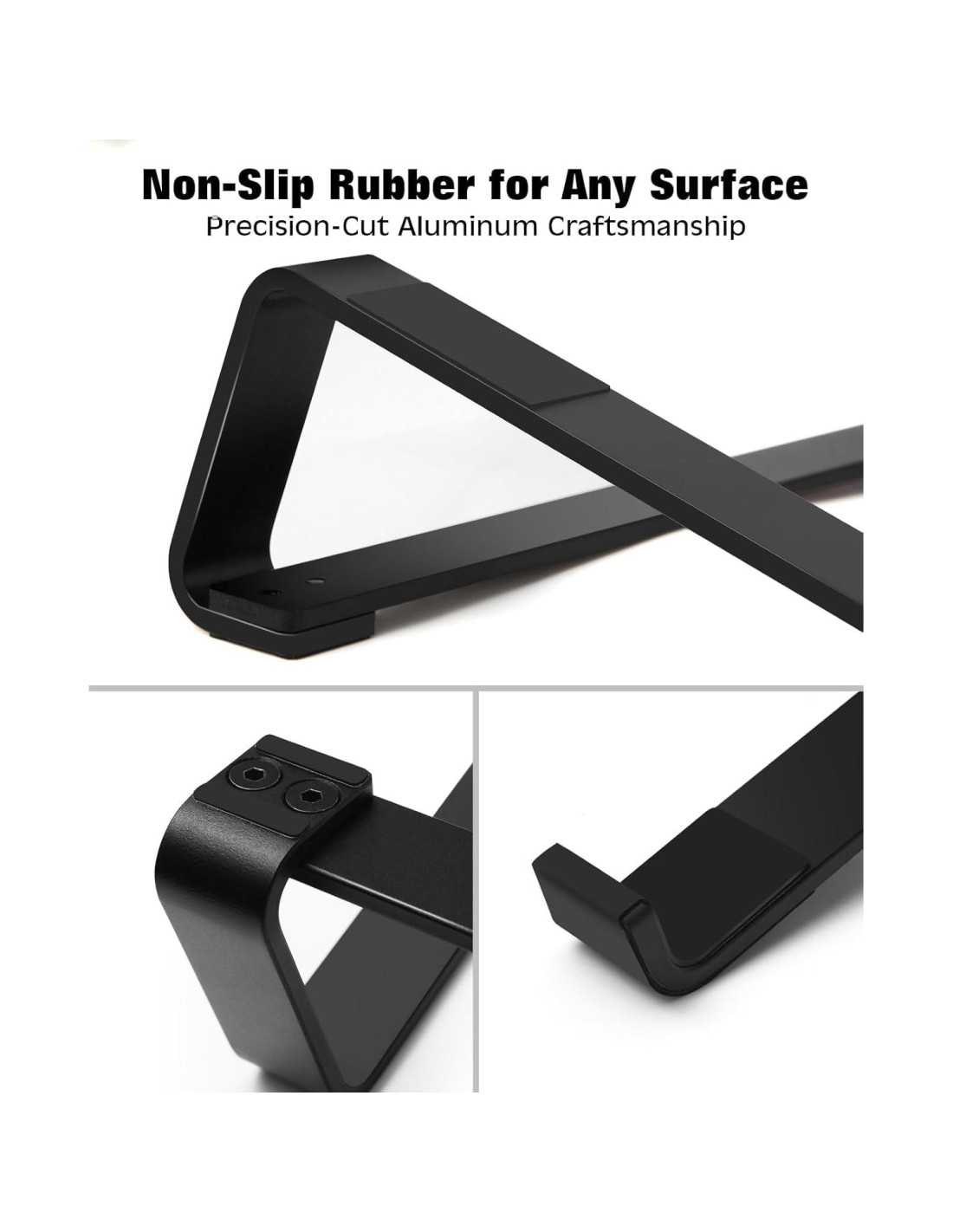 - 1. Soporte para Laptop de Aleación de Aluminio Resistente: Descubre la esencia de la simplicidad y la fuerza con nuestro soporte para laptop. Meticulosamente fabricado con robusta aleación de aluminio, asegura una durabilidad inquebrantable mientras mantiene un diseño elegante y minimalista. ¡Esencial para la oficina! Mejora tu experiencia con nuestro soporte ventilado inclinado, compatible con laptops de hasta 17/17.3 pulgadas (43,18/43,66 cm).