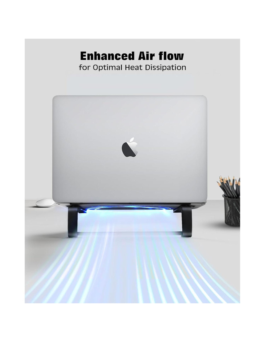 - 3. Eleva la laptop a una altura cómoda: Experimenta la excelencia ergonómica con nuestro soporte de ventilación para laptop cuidadosamente diseñado. Eleva tu laptop a la altura y ángulo perfectos para una escritura cómoda y una visualización óptima. Di adiós al dolor de cuello y hombros mientras trabajas o miras, gracias a nuestra solución cuidadosamente elaborada. Soporte para laptop negro para macbook air / DJ / Gaming / Trabajo desde Casa.