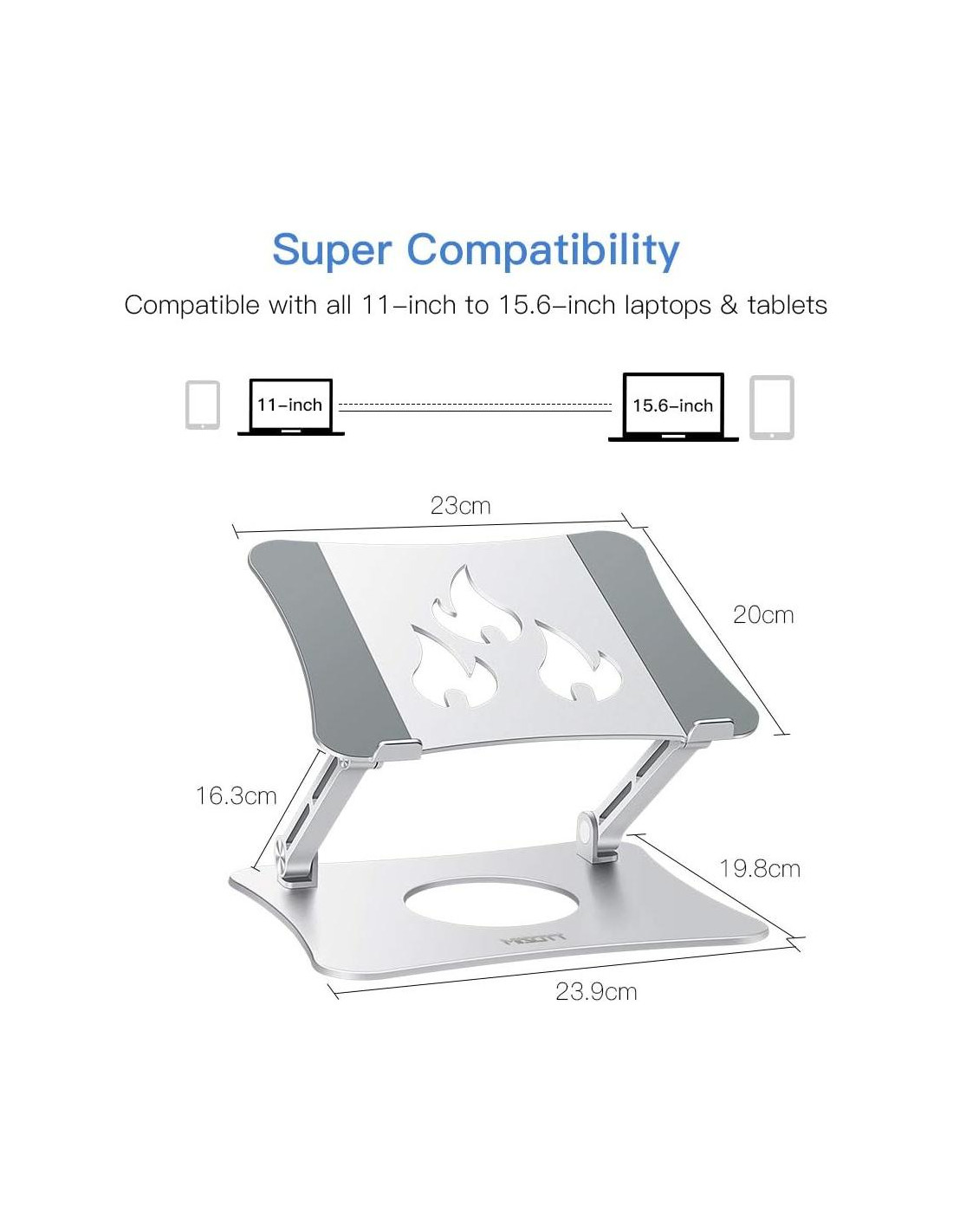 - Compatibilidad Amplia Este Soporte de Laptop Ajustable es compatible con todas las laptops y tabletas de 10-15.6 pulgadas. Nota: No está diseñado para laptops de 17 pulgadas.