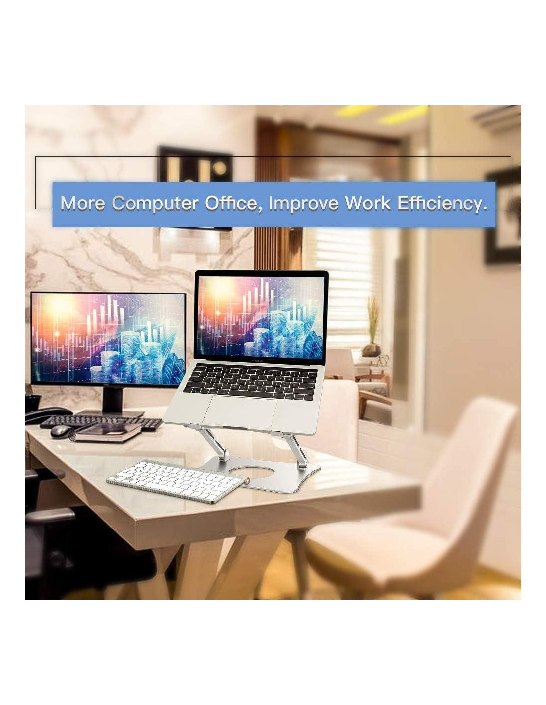 - Diseño 2 en 1 de Pie, Adecuado para Laptops y Tabletas A diferencia de otras marcas, nuestro elevador de laptop es perfecto para hacer que tus tabletas se mantengan en pie para ver con su diseño de soporte. No se necesitan herramientas para el ajuste, solo tira de este soporte para laptop a la altura que desees y colócalo en tu escritorio como un soporte para tableta.