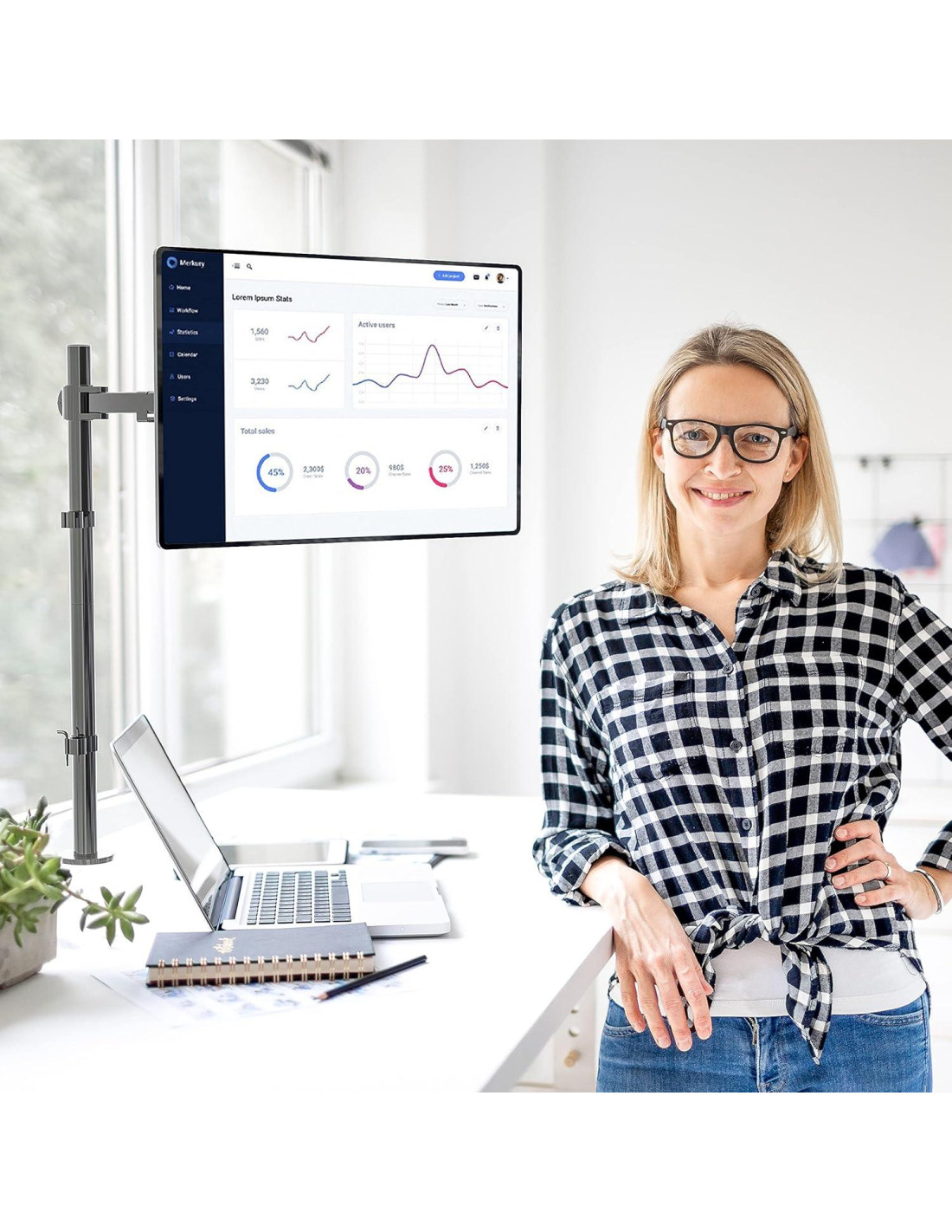 - Doble Beneficio: El brazo del monitor es fácilmente ajustable en el poste de altura de 31.5" (80,01 cm). Doble eficiencia y productividad al abrir espacio en el escritorio, permitiendo trabajar en una posición más cómoda y ergonómicamente correcta para reducir la tensión en el cuello y los ojos.