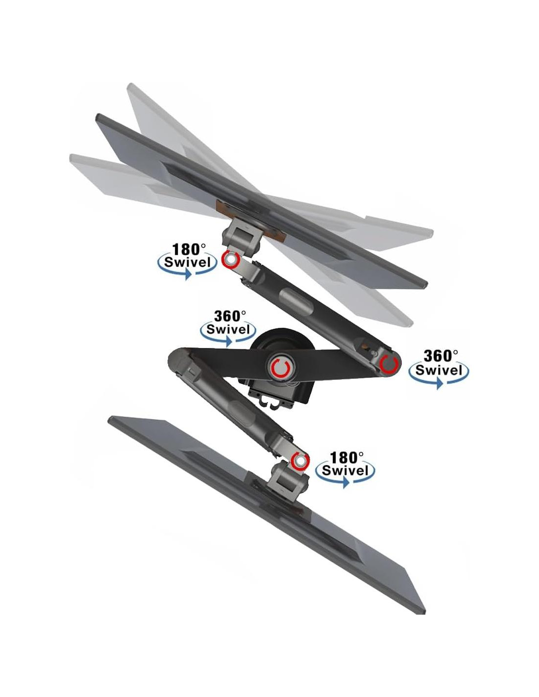 - AJUSTES DE AMPLIO RANGO Integrado con un resorte de gas de ultra precisión, Soporte: ajuste de inclinación de pantalla de +85 a -30, rotación de 360 para modo horizontal o vertical; Elevación vertical de 10.2" (260mm) y giro de +90 a -90 grados, lo que es perfecto para escritorios más profundos y grandes.