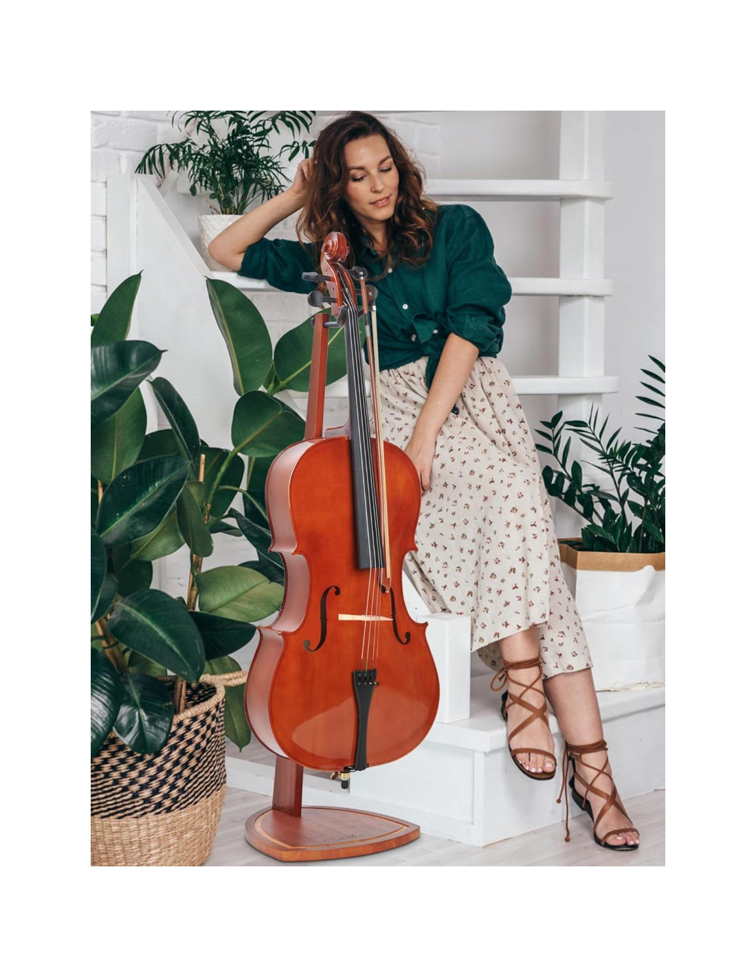 - Se adapta a tamaños de violonchelo de 1/8 a 4/4: La altura desde el yugo hasta la base abarca 46 pulgadas (116,84 cm), ofreciendo amplio espacio para acomodar la mayoría de los tamaños de violonchelo, incluyendo 1/8, 1/4, 1/2, 3/4, 7/8 y violonchelos de tamaño completo (Nota: La altura del pasador del violonchelo NO está incluida). Ya seas un famoso chelista, un aficionado, un principiante o un niño, este soporte de piso de madera para violonchelo proporciona un gran lugar de exhibición y descanso para los violonchelistas de todas las edades y antecedentes.