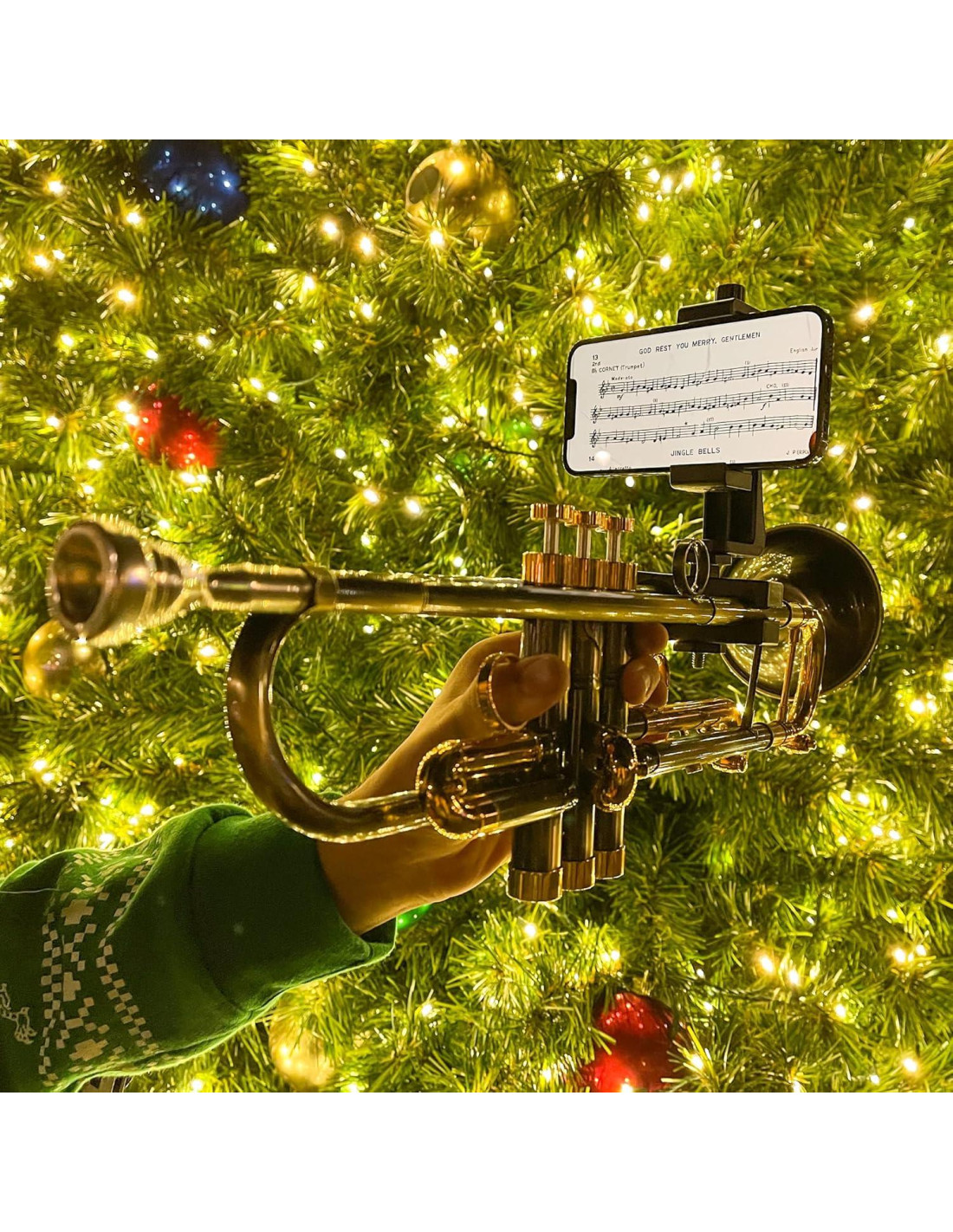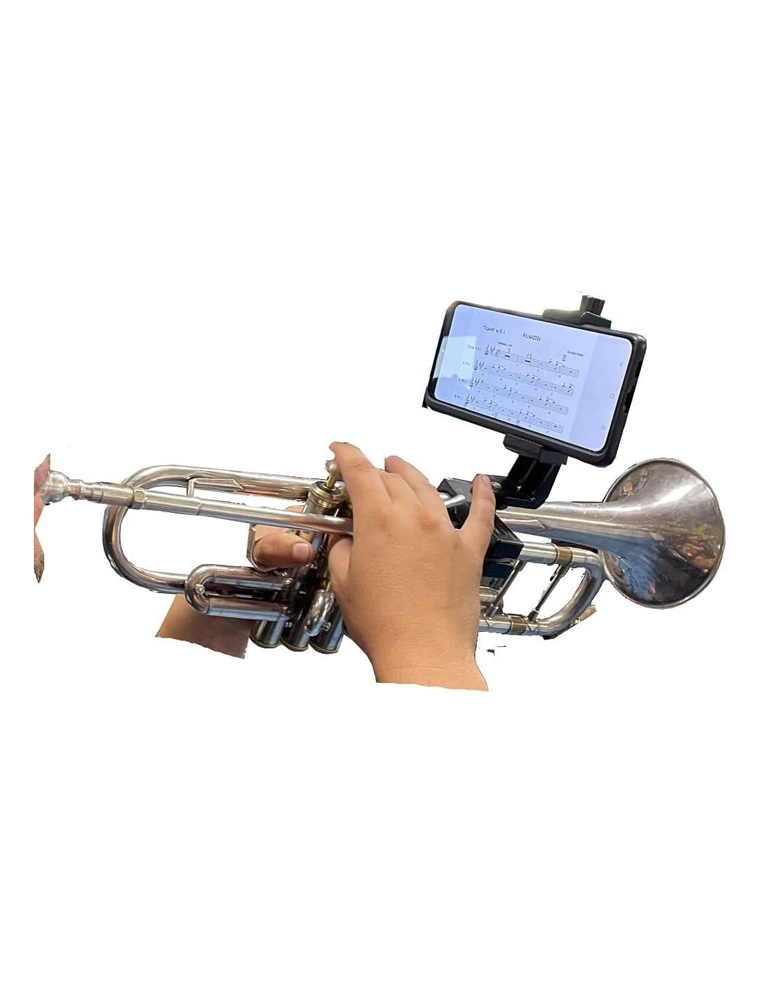 - COMPATIBILIDAD UNIVERSAL CON SMARTPHONES - Compatible con el 99% de los teléfonos, con o sin fundas, nuestro producto asegura un ajuste ceñido y seguro para tu teléfono mientras te concentras en tu actuación. Nunca te pierdas un compás con nuestro versátil trompeta lyre.