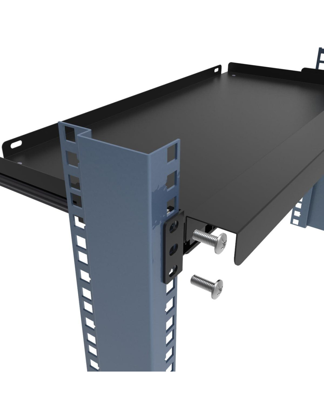 - Medidas del Producto: 19" Ancho x 8" Profundo (48,26 cm x 20,32 cm), Medidas Internas: Ancho 17.1" (43,43 cm) x Profundidad 7.9" (20,07 cm); Ocupa 1U de Espacio; la Bandeja se Puede Sacar 6.89" (17,5 cm) para Instalación de 2 Postes. Suficiente Espacio para un Teclado.