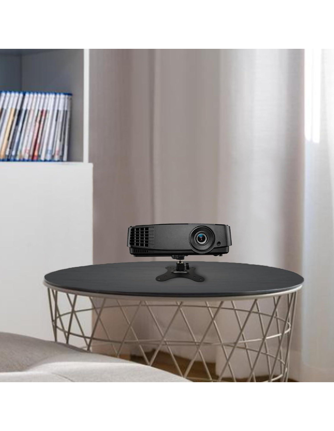 - Un sistema de junta esférica integrada que permite una inclinación de 90 grados, cabeza rotatable 360 para ajustar fácilmente el ángulo. Compatible con la mayoría de los proyectores u otros dispositivos como proyector mini, proyector DLP, cámara digital y videocámara, etc. FÁCIL DE INSTALAR. Solo taladre 4 agujeros en la pared y coloque el proyector en la posición deseada y listo.
