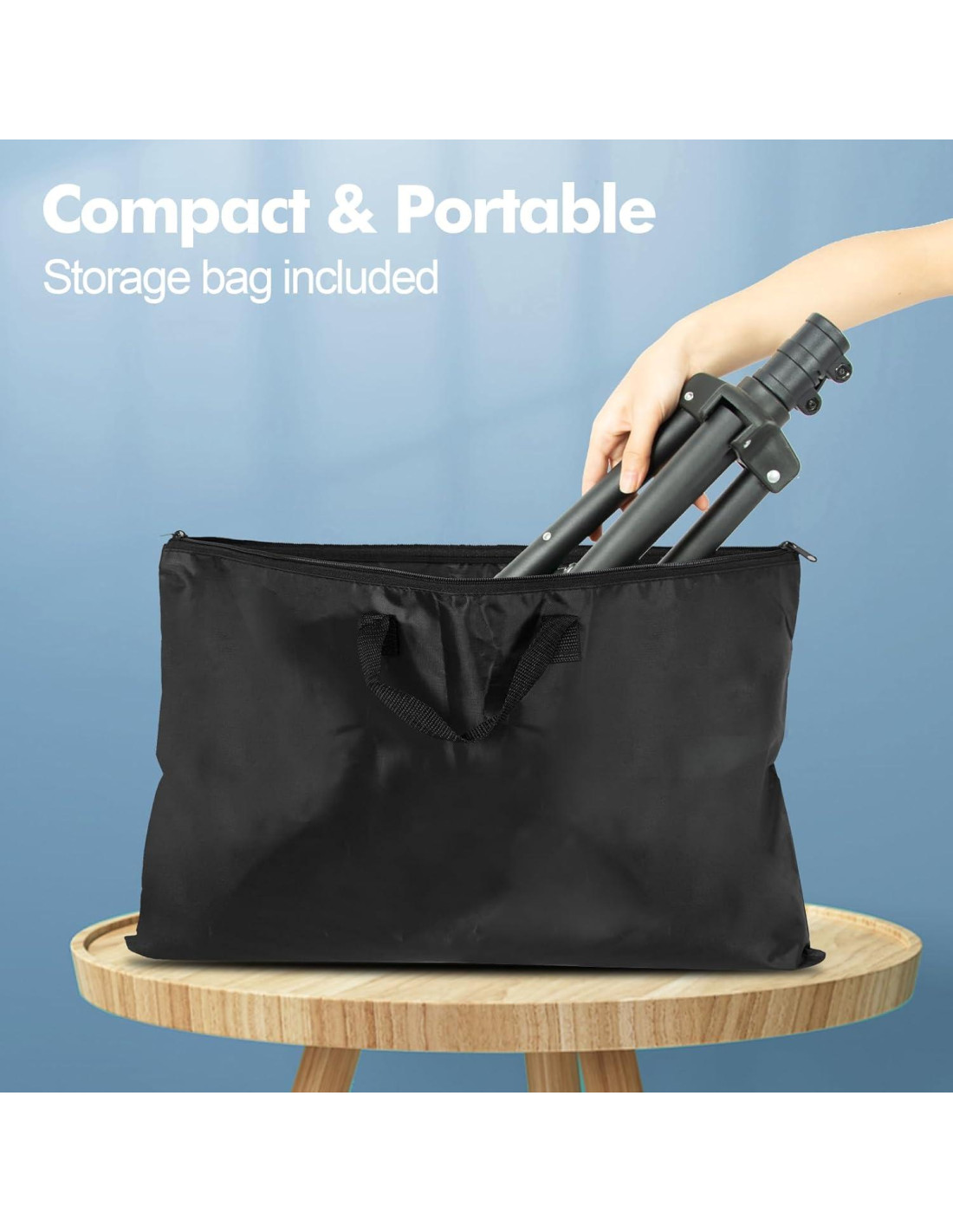 - [Ruedas Silenciosas y Bolsa de Transporte] El trípode desmontable para el proyector está equipado con ruedas giratorias silenciosas premium de 360, por lo que puede llevar fácilmente su equipo a cualquier lugar y moverlo con una suavidad inigualable. Las cuatro ruedas son bloqueables para mayor seguridad. El soporte de trípode para proyector se puede plegar a un tamaño compacto y viene con una bolsa organizadora. Llévelo fácilmente a donde quiera que vaya, ideal para presentaciones o eventos de entretenimiento en movimiento.