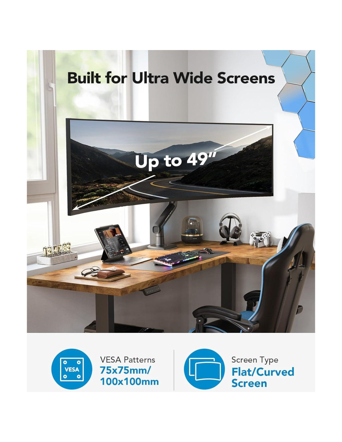 - Configuración Rápida en 3 Pasos: El soporte de escritorio para monitor tiene una cabeza VESA de instalación rápida, por lo que puedes montar tu monitor ultrawide de 49" (124.46 cm) en segundos. El paquete incluye instrucciones claras y detalladas y componentes etiquetados para un ensamblaje fluido. Además, la gestión de cables integrada mantiene tus cables ordenados y organizados para un espacio de trabajo limpio y optimizado.