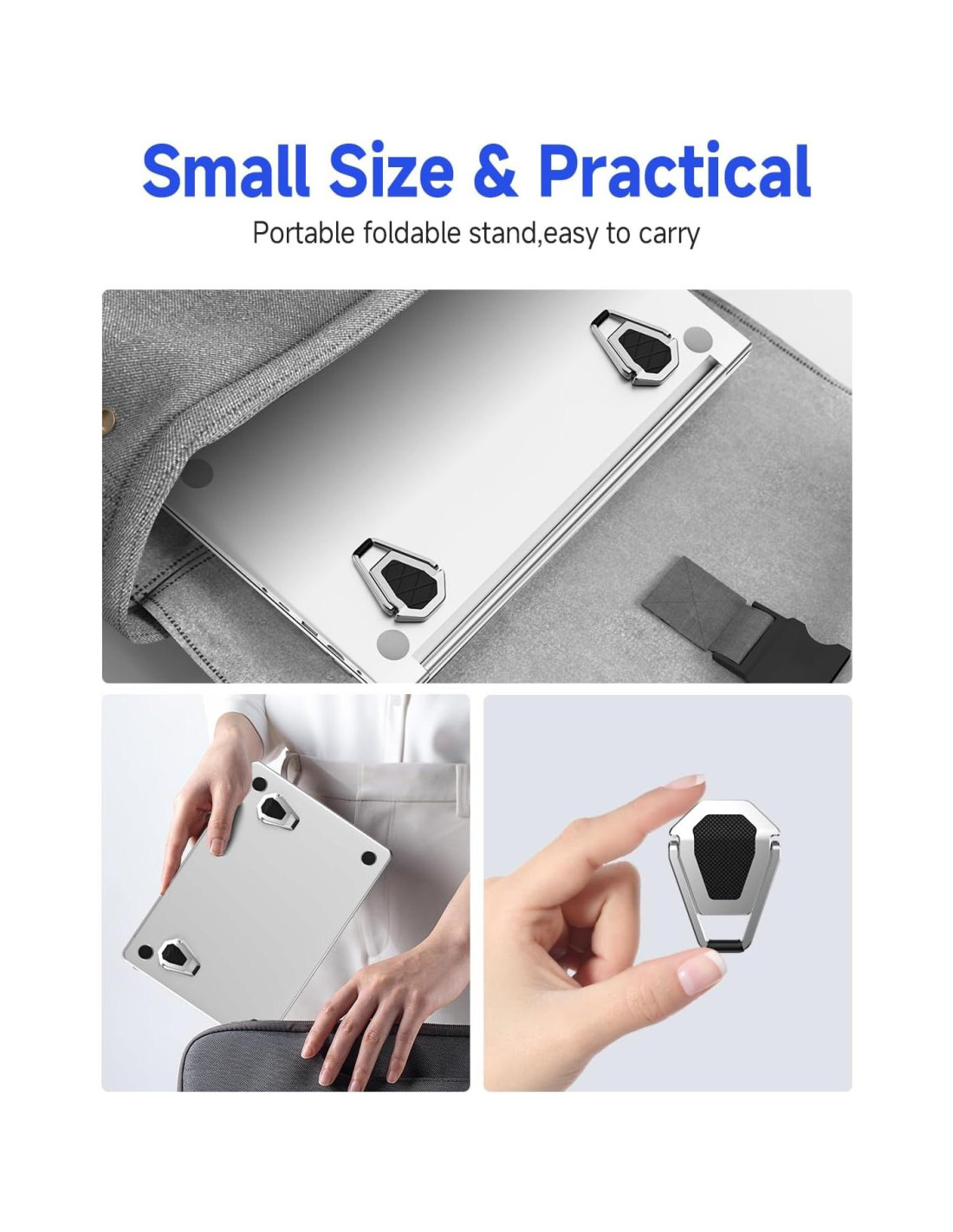 - Diseño Ligero y Portátil: Este soporte de laptop plegable pesa solo 46 gramos. El tamaño es solo 1.73 pulgadas x 1.38 pulgadas (aproximadamente 4.8 cm x 3.5 cm) cuando está plegado. Se puede poner en una mochila y llevarlo a cualquier lugar. Ya sea que vayas a la escuela, a la oficina o de viaje de negocios, puede brindarte comodidad.