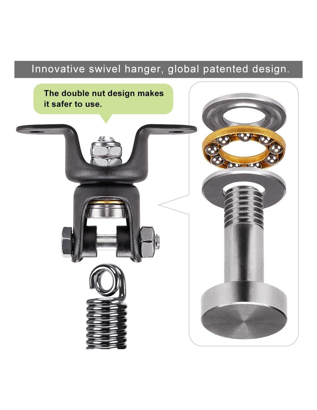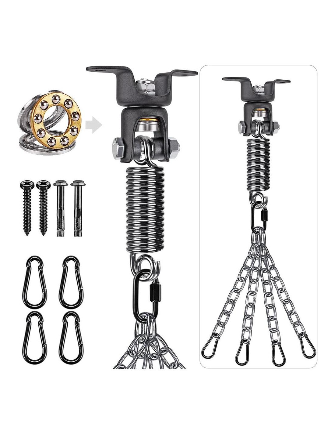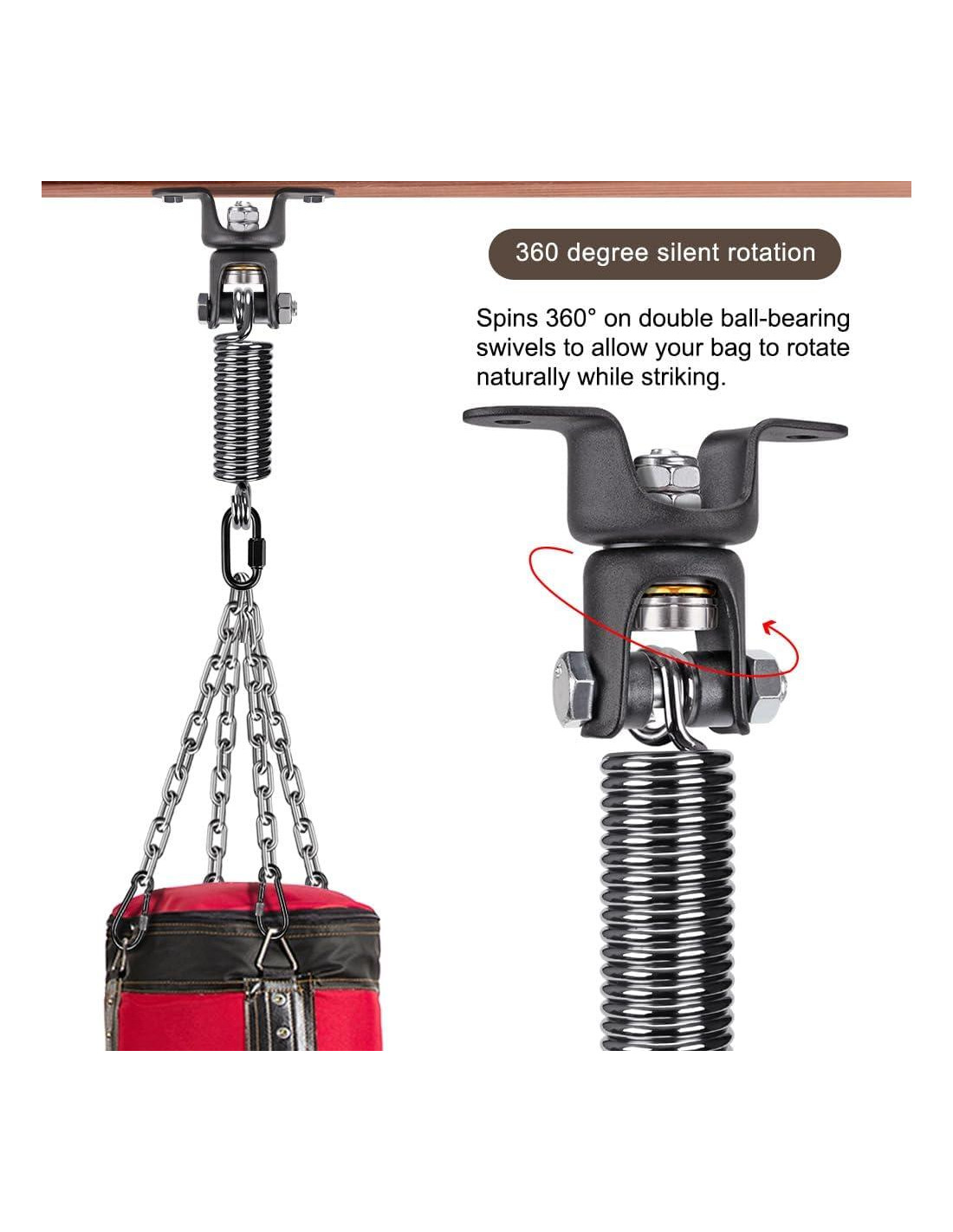 - Rotación de 360: el kit de soporte para bolsa de boxeo cuenta con un diseño de rotación de 360 que permite mover tu bolsa en cualquier dirección. Esto mejora tu experiencia de entrenamiento y reduce el estrés en el soporte y la viga.