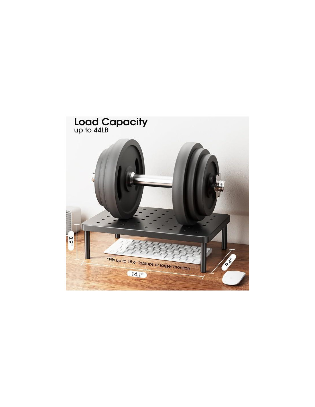 - DIMENSIONES ADECUADAS: El elevador para monitor WiseBegan mide 14.1''x9.4''x3.9'' (35.8cm x 23.9cm x 9.9cm), perfecto para laptops de hasta 15.6'' (39.6cm) y la mayoría de los monitores de escritorio, soportando hasta 44 lbs (19.96 kg).