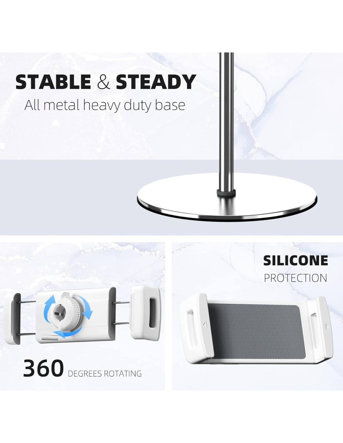 - AJUSTABLE Y MULTIFUNCIONAL: El soporte para tableta de altura ajustable se puede retraer libremente en cinco posiciones y estirarse manualmente a una altura de 16.5-66.1 pulgadas; gimbal rotatorio de 360, ángulo del soporte a tu disposición. El soporte para iPad te proporciona el ángulo de visión más cómodo y la altura ergonómica para los ojos. El soporte de escritorio para iPad es perfecto para ver videos, ver fotos, leer, escribir, grabar videos y jugar