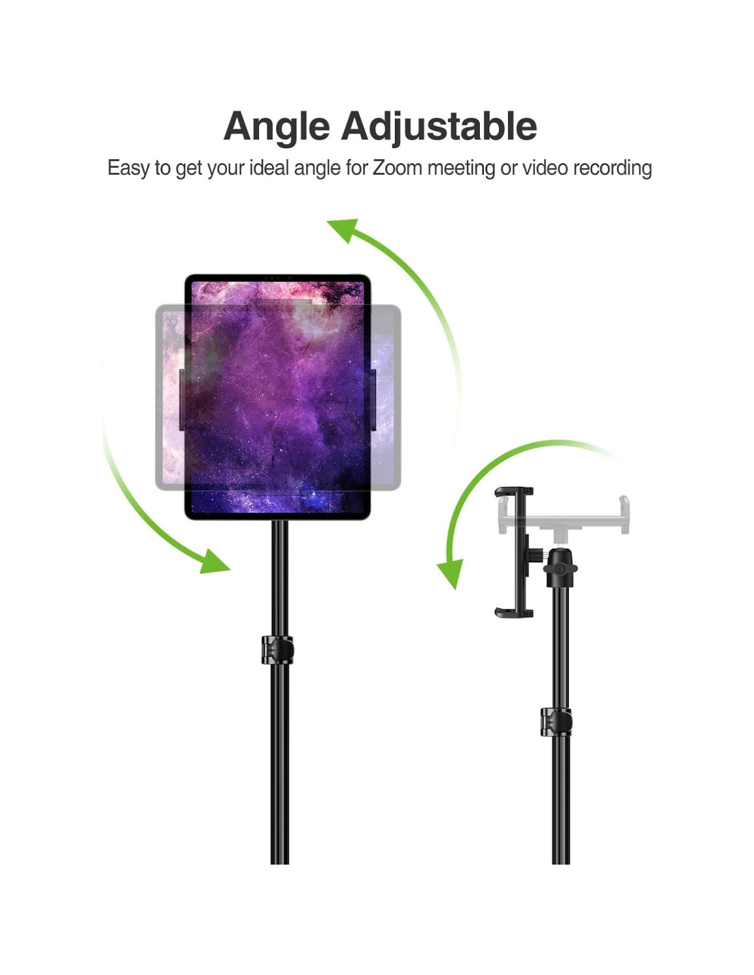 - Compatibilidad Universal Este soporte de trípode para iPad es compatible con todas las tabletas y teléfonos de 4.7-13.5 pulgadas (11,94-34,29 cm), como el iPad Pro/Air 13 y 11 pulgadas (33,02 y 27,94 cm) de 2024, el iPad Pro 12.9/11 de 2023 2022, iPad 10 9 8 7, iPad Air 5 4 3, Samsung Galaxy Tab S9 A9+, A8, S6 Lite, Microsoft Surface Pro, Google Pixel Tablet, tablet Nexus, iPhone y todos los teléfonos Android. La garra del soporte de la tableta tiene un grosor de hasta 0.8 pulgadas (2,03 cm) para que no necesites quitar la funda protectora de tu tableta.