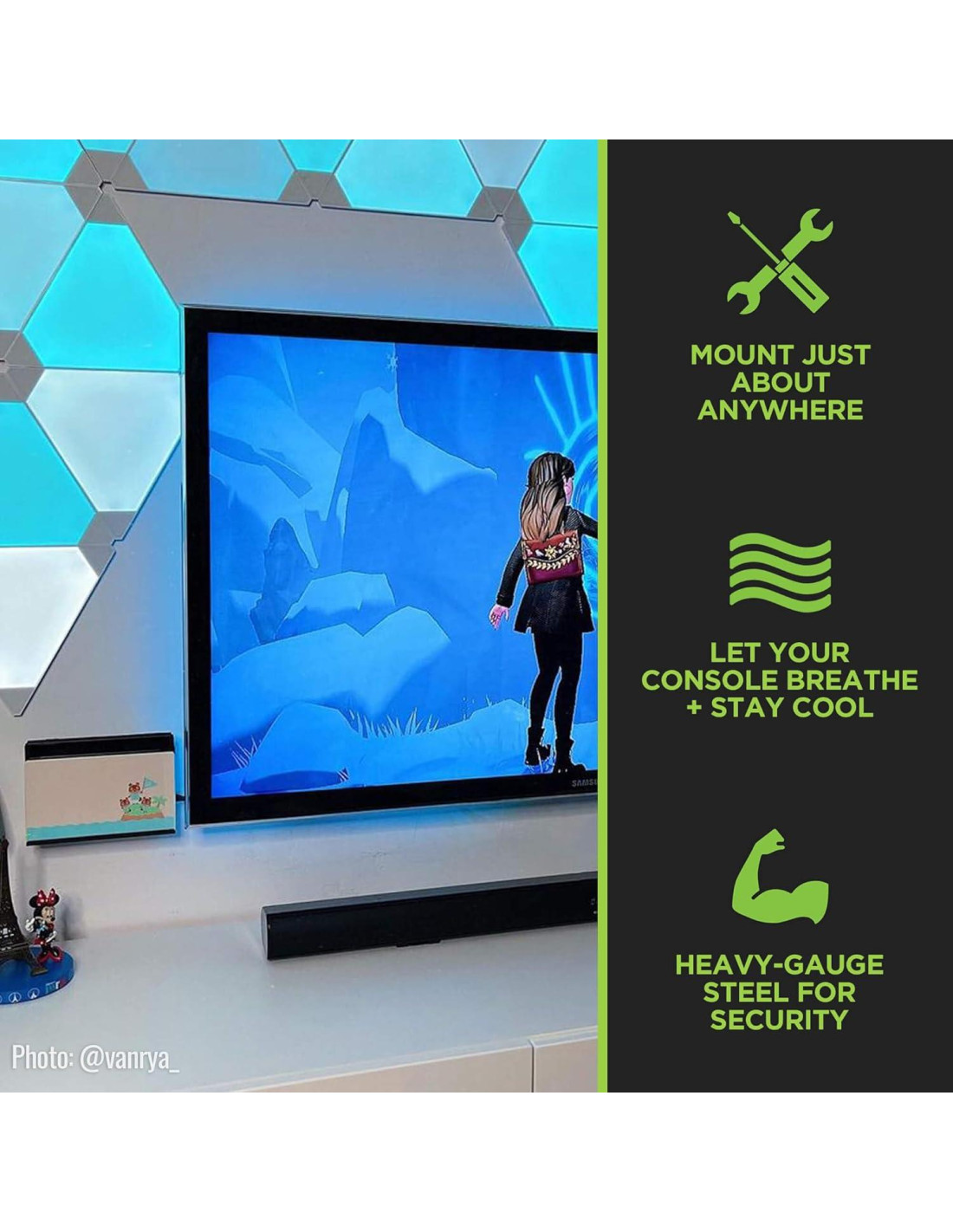 La Nintendo Switch es un nuevo tipo de consola de juegos; ¡es una consola portátil y una estación de acoplamiento en uno! Nuestro soporte para Nintendo Switch mantiene tu Switch a salvo de daños, evitando daños accidentales por derrames, mascotas o niños. El diseño elegante y empotrado permite un fácil acceso al Dock de Nintendo Switch y a los Controladores Joy-Con. La pestaña incorporada evita que se deslice, y los agujeros avellanados aseguran una instalación al ras, facilitando la creación de una configuración limpia.