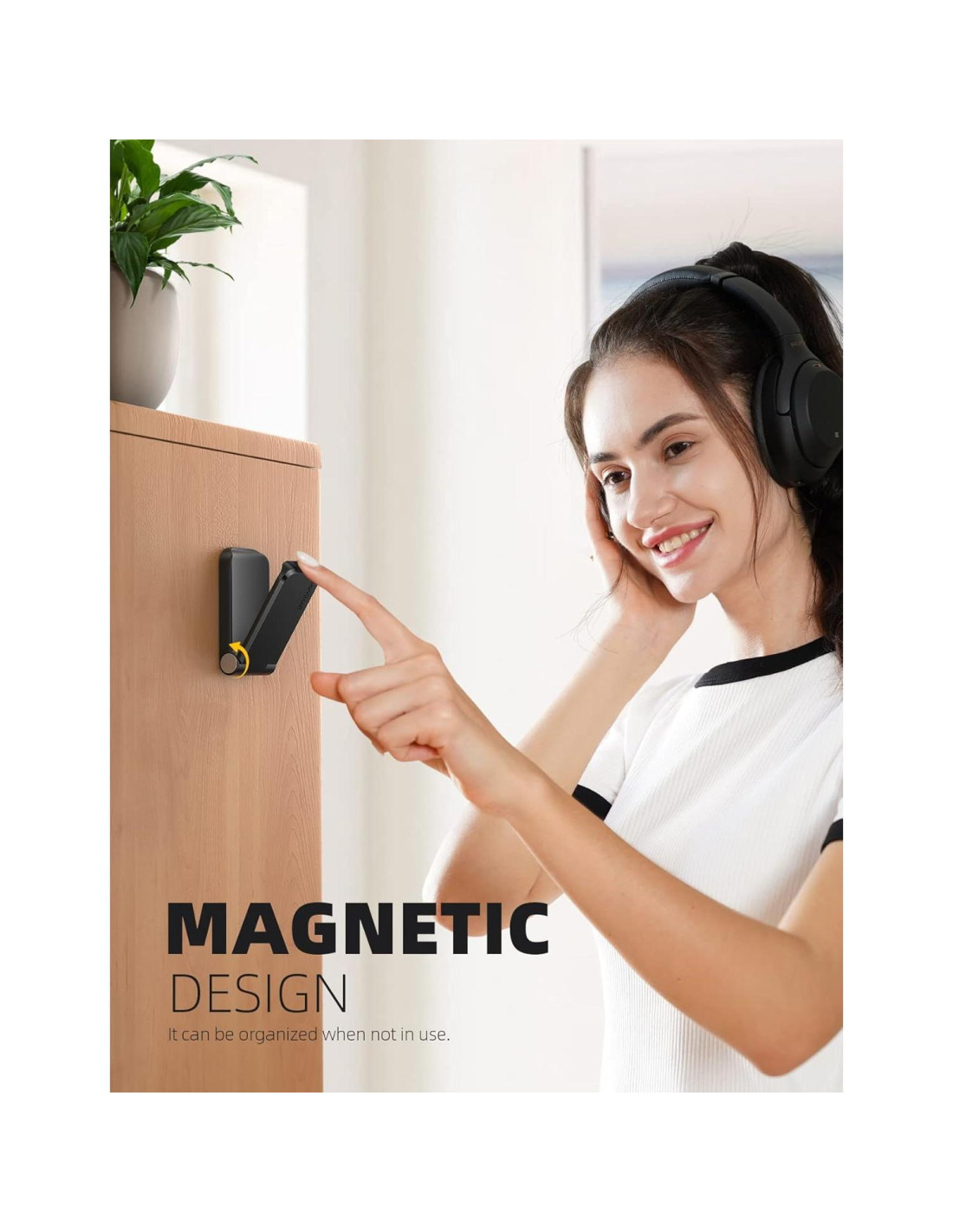 - Diseño Magnético: El soporte para auriculares tiene un imán, por lo que se puede plegar por fuerza magnética cuando no está en uso. Ideal para ahorrar espacio. El brazo para auriculares está cubierto con una almohadilla de goma suave para proteger sus auriculares de deslizamientos y rasguños, y no dañará sus auriculares.