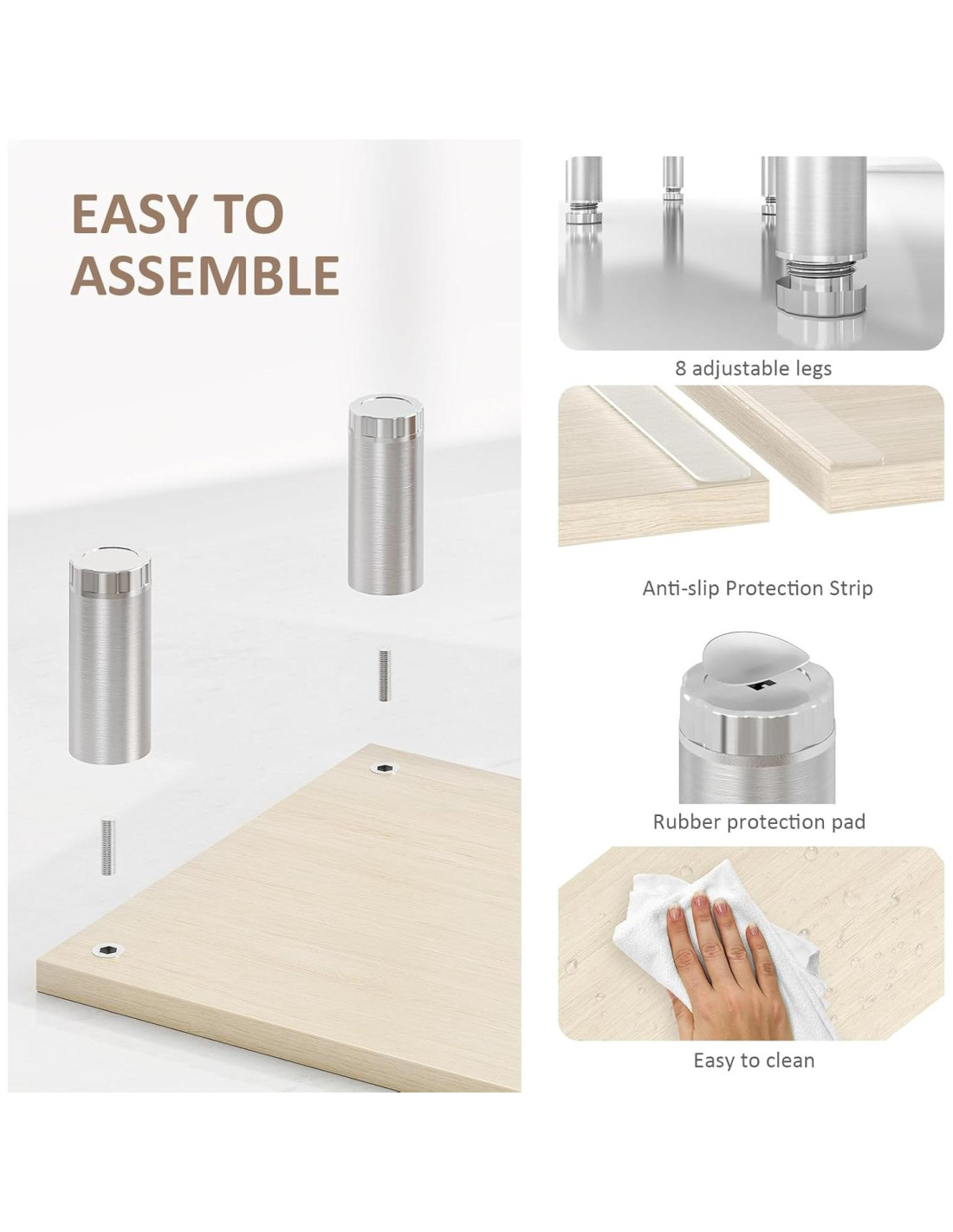 . Permite más espacio para artículos como libros, dispositivos electrónicos y suministros de oficina para un escritorio más limpio y ordenado. Eleva tu pantalla a una altura ergonómica con un soporte de monitor elevable que puede aliviar el dolor de cuello y espalda. La fricción entre las dos tablas de madera aumenta, evitando el desgaste mutuo entre las tablas. La fricción entre la base y la superficie de la mesa se incrementa, y se evita el desgaste de la base y la superficie de la mesa. La superficie tiene una capa impermeable, lo que facilita la eliminación de manchas con un paño regular. La altura del monitor se puede ajustar para brindarte un mejor ángulo de visión porque está equipado con 8 patas que se pueden ajustar por separado.