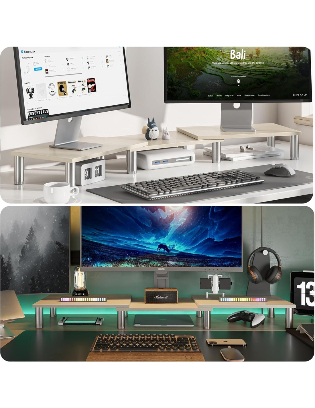 - DISEÑO ERGONÓMICO: Este gran soporte para monitor puede ajustar la longitud que necesitas de 29.2" (74.2 cm) a 42.5" (108 cm), adecuado para la mayoría de las pantallas, laptops, impresoras, con un peso máximo soportado de 100lbs (45kg). Las patas de acero total añaden almohadillas de goma antideslizantes para evitar deslizamientos o daños en tu escritorio.