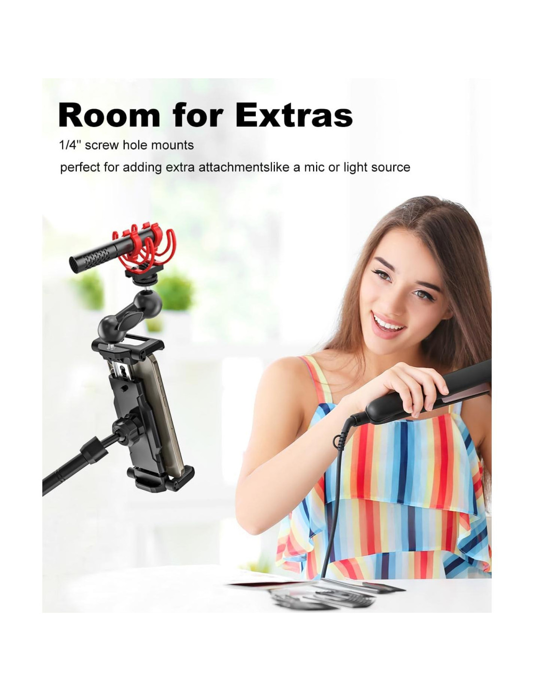 - [Ajustable 360] El cabezal de bola de metal puede girar 360 y 90, y la pantalla se puede cambiar entre orientaciones horizontal y vertical a voluntad, lo que es estable y no se desliza. Perfecto para grabación de video, selfies, enseñanza remota, cursos en línea, grabación de música en vivo, reuniones de Zoom, ver películas y más