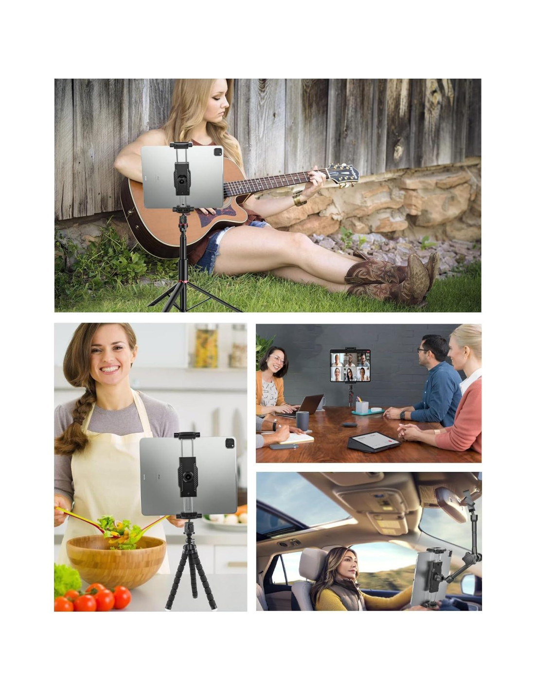 - [Más estable y seguro] El adaptador de trípode para tabletas mejorado tiene una costilla de refuerzo incorporada en el medio de la base. Brazos de resorte potentes y mandíbulas grandes combinadas para asegurar que tu dispositivo se mantenga de manera estable. Además, la base y las mandíbulas del soporte para iPad están cubiertas con almohadillas antideslizantes para proteger tu dispositivo de rasguños y deslizamientos, reduciendo el riesgo de caídas