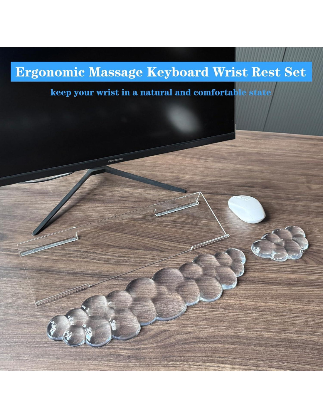 - [TOTALMENTE EQUIPADO PARA TU ESCRITORIO] - El conjunto 3 en 1 consta de 3 componentes esenciales para trabajadores de oficina, jugadores, diseñadores, estudiantes y cualquier otra persona que pase mucho tiempo usando una laptop o computadora: soporte de teclado de acrílico transparente (), reposamuñecas de gel en forma de nube (42.9 cm x 11 cm x 2.5 cm), reposamuñecas de gel en forma de nube (12 cm x 6 cm x 2.5 cm). Accesorios de escritorio para juegos en PC, escritorio y tareas escolares, soporte de mano, bandeja de teclado grande y pequeña que se inclina para una escritura cómoda.