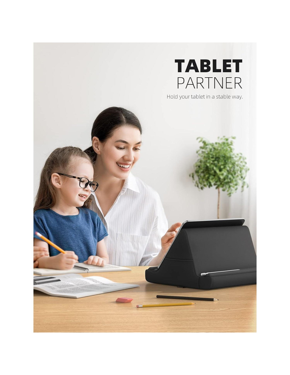 - [ Disfruta Tu Vida] Este soporte de almohada para tablet es perfecto para leer libros, jugar juegos, ver videos, ver fotos, escribir en la cama o sofá. Usar la tablet en el regazo para divertirte más con tu familia y amigos.