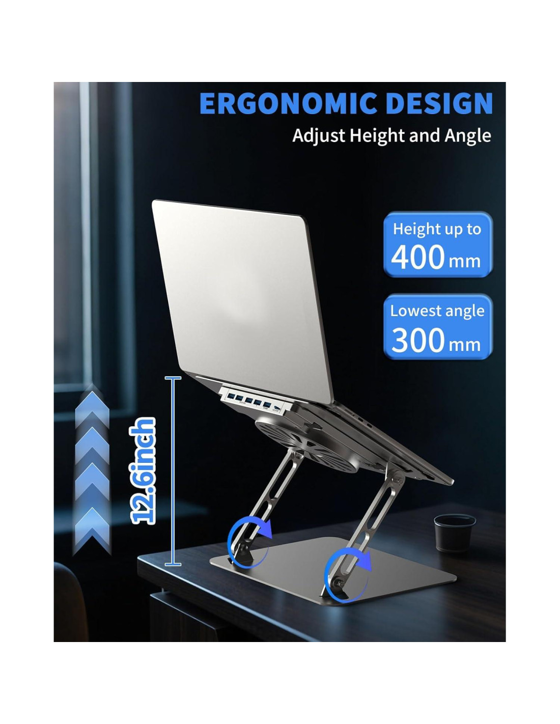 - Equipado con cuatro puertos USB 3.0 --- Este soporte para laptop también tiene cuatro puertos USB 3.0 en la parte trasera para conectar varios accesorios (cable de carga, ratón, teclado, etc.). Junto con un puerto de alimentación USB separado para alimentar el ventilador de enfriamiento. (Se proporciona un cable USB a USB)