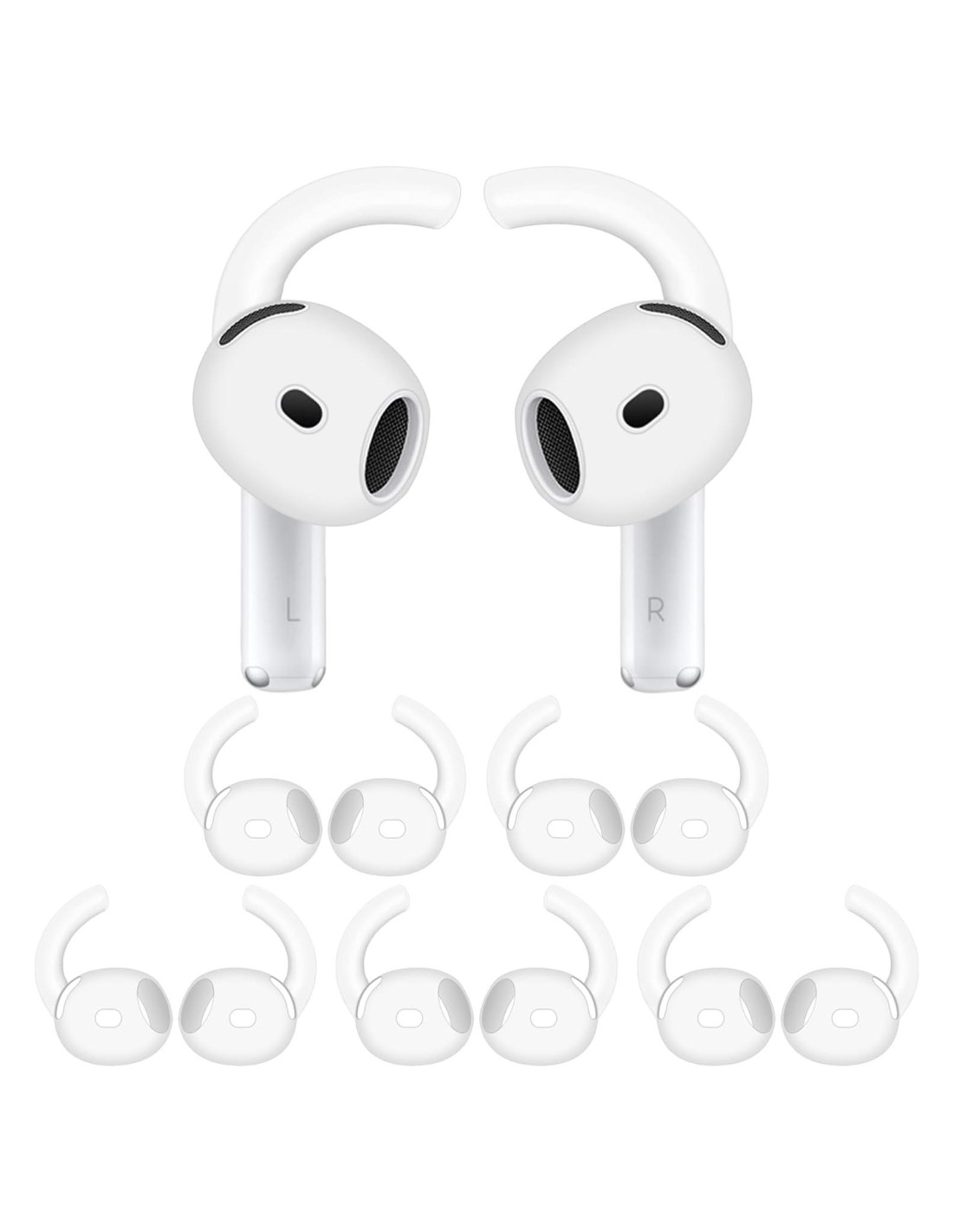 IiEXCEL 5 Pares de Ganchos para Orejas AirPods 4, Alas de Silicona de Reemplazo, Ganchos Deportivos Ergonómicos, Soporte de Puntas de Alas Antideslizante, Accesorios Cómodos Compatibles con AirPods 4 - Blanco