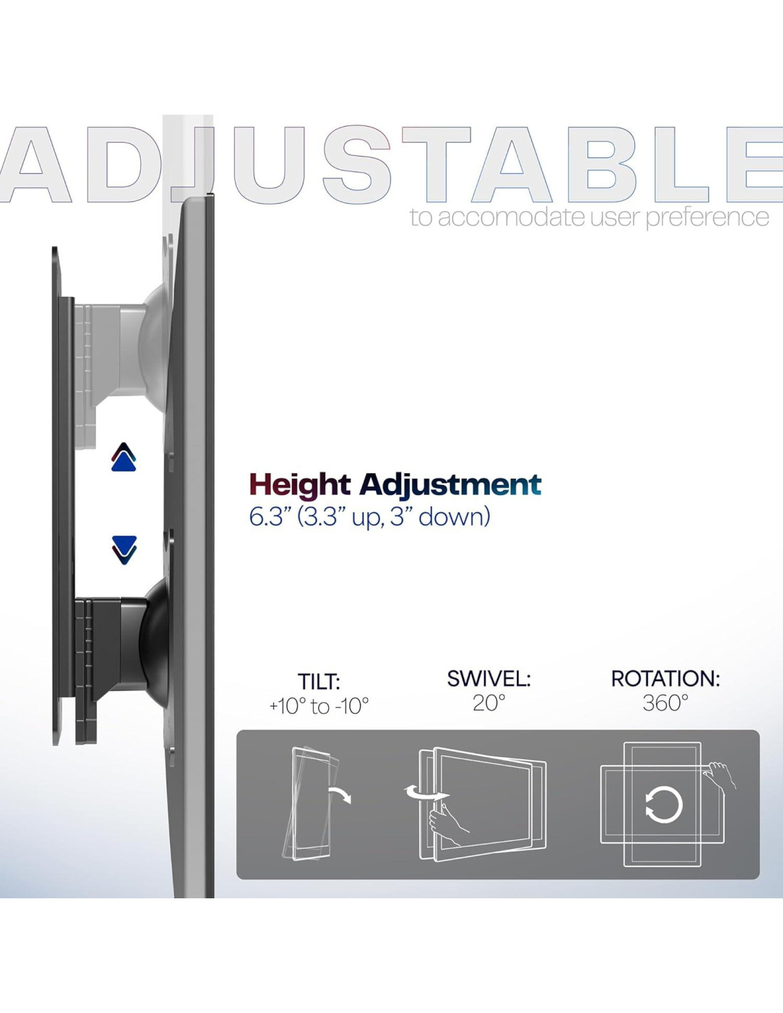Ahorra espacio en el escritorio y eleva tu pantalla a una altura ergonómica, encontrando la posición de visualización adecuada (incluso después de que la pantalla esté montada en la pared). Presenta un diseño de bajo perfil para eficiencia de espacio y una construcción de acero resistente para mantener tu monitor seguro y protegido. Para ángulos de visualización cómodos y reducción de deslumbramiento. 7.6 cm hacia arriba, 7.6 cm hacia abajo. Para restablecer la altura, eleva el monitor al punto más alto y luego colócalo en la configuración deseada. Se monta en vigas de madera o paneles de yeso para una configuración fuera del camino.