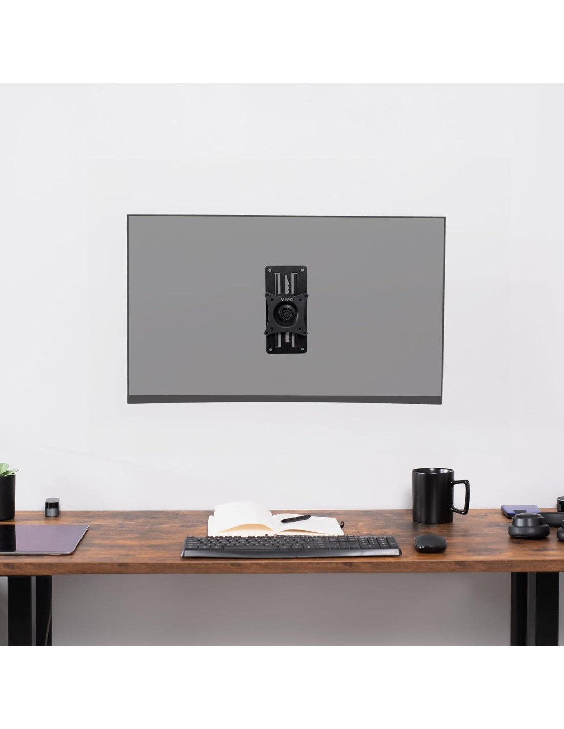 - Acomoda Pantallas de 43 a 81 cm - Soporte de pared para un solo monitor que acomoda pantallas de 43 a 81 cm que pesan hasta 8.0 kg con patrones de orificio VESA de 75x75mm o 100x100mm. Se monta en vigas de madera o paneles de yeso y crea una exhibición limpia y ergonómica. Nota: El hardware para monitores con respaldos curvados o hundidos no está incluido.