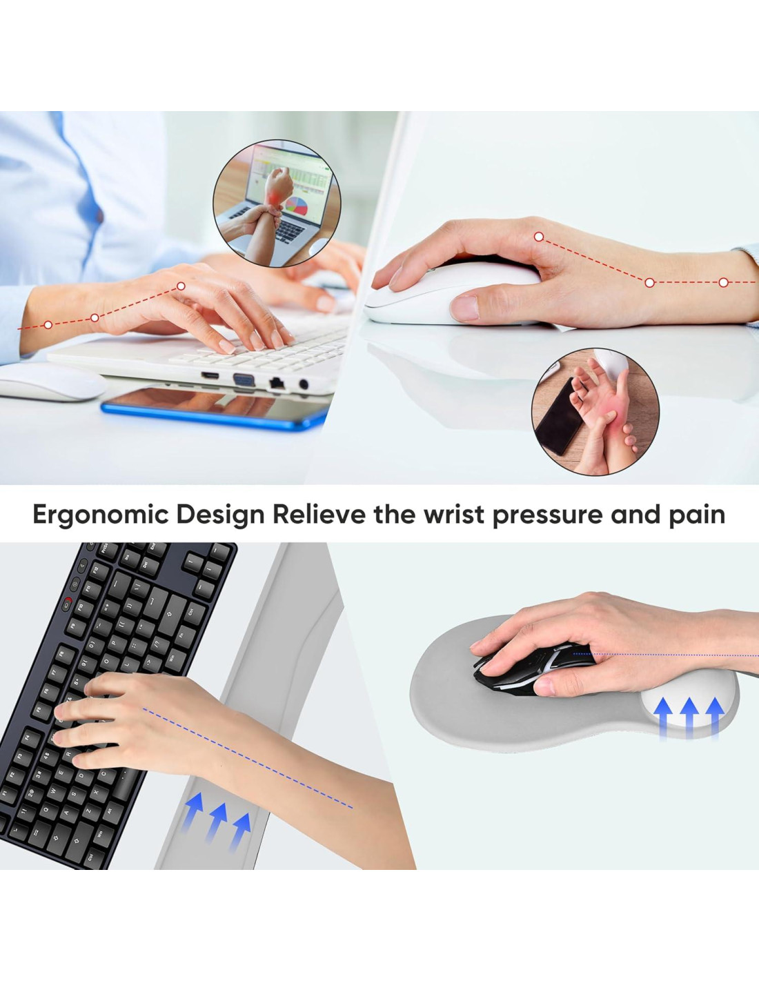- Nuestro conjunto de almohadilla para muñeca de teclado y almohadilla para muñeca de mouse está contorneado ergonómicamente para mantener la muñeca bien soportada mientras trabaja y juega durante largos períodos de tiempo. adecuado para hombres/mujeres, todo tipo de ocasiones como trabajar, reunirse, jugar, jugadores, trabajadores de oficina, escritores, editores, diseñadores, estudiantes y otros.