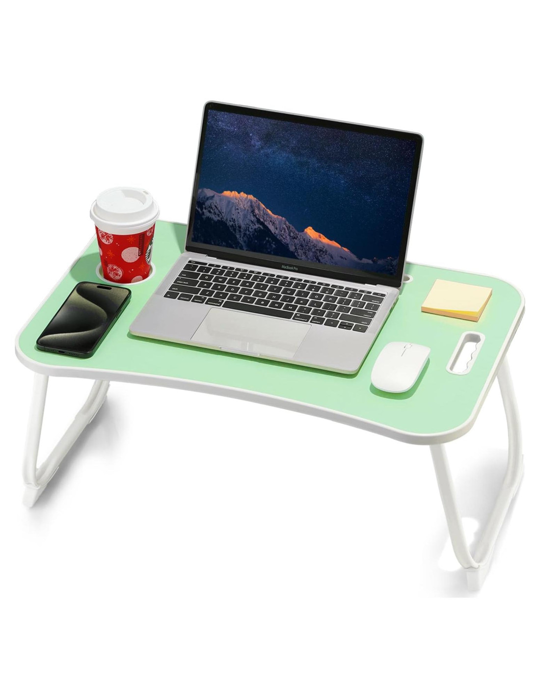 - Funcionalidad Versátil: Diseñado para la adaptabilidad, esta mesa para laptop se adapta a varios entornos. Ya sea en la cama, el suelo, la alfombra, el sofá, el escritorio o incluso en el césped, disfruta de la libertad de trabajar, escribir o disfrutar del desayuno con la máxima comodidad en tu cama, sofá o suelo.