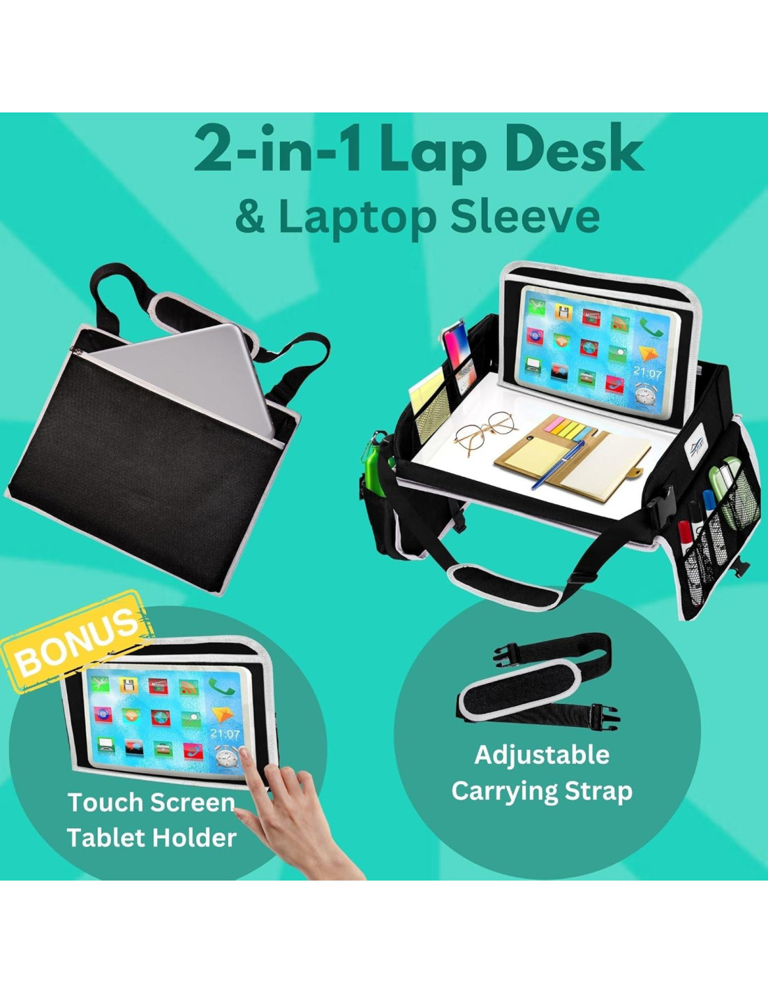 - Almacenamiento conveniente para laptop - No necesitas llevar una bolsa de transporte separada para tu laptop o tablet. Esta bandeja de viaje para adultos viene con una funda incorporada para almacenar tus dispositivos electrónicos. Este escritorio de regazo perfecto tiene una bolsa portadora de tablet para un conveniente estuche de transporte.