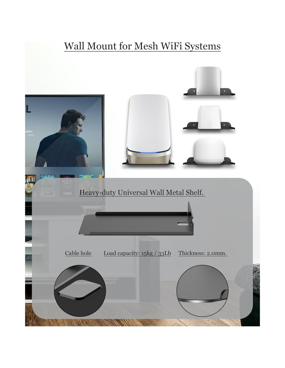 - Montaje de Sistemas WiFi Mesh en Pared: El estante de metal para pared es compatible con la mayoría de los Sistemas WiFi Mesh, como TP-Link Deco, NETGEAR Orbi, Google home/nest WiFi, Tenda Nova, Linksys Velop, eero, ASUS Zen o mini proyector y más.